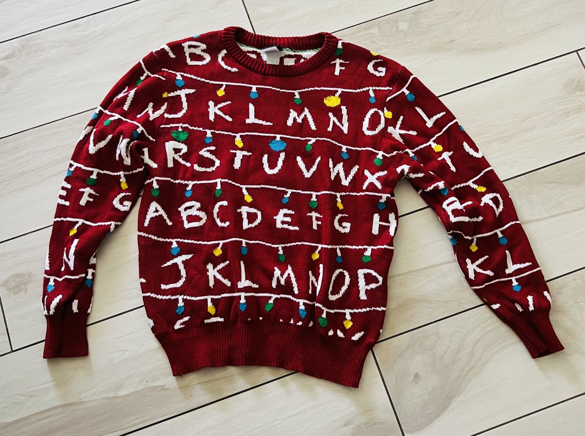 Stranger Things Ugly Sweater Mens L Red Christmas Lights Alphabet Netflix
