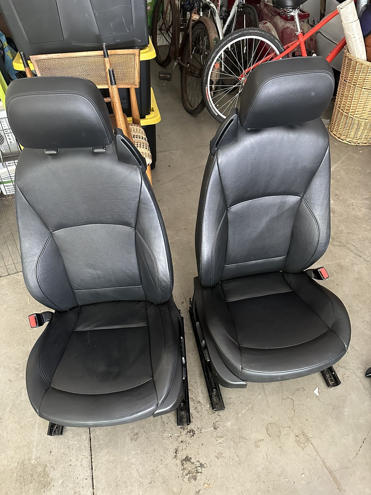 These seats came out of our 2007 Z4 3.0 si. The car had 16k miles when we upgraded to the sports seats a couple weeks ago. Some light wear on drivers side seat (pictured) but otherwise perfect. Black Oregon Leather. All power assist seat positions working. Seatbelt harnesses included. .