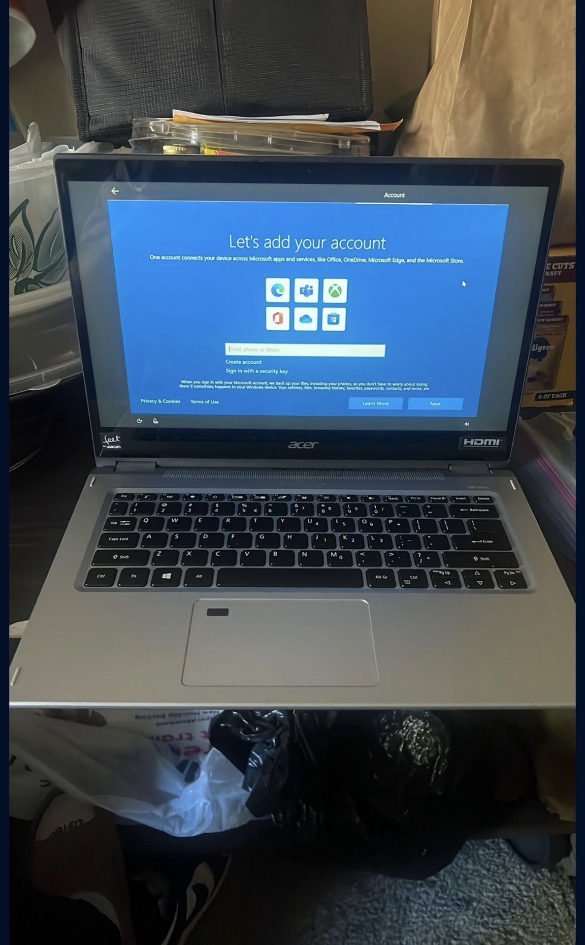 Comes with charger, mouse, stylus, protective sleeve. Has a small dent on the right side but screen is not damaged and works perfectly fine.