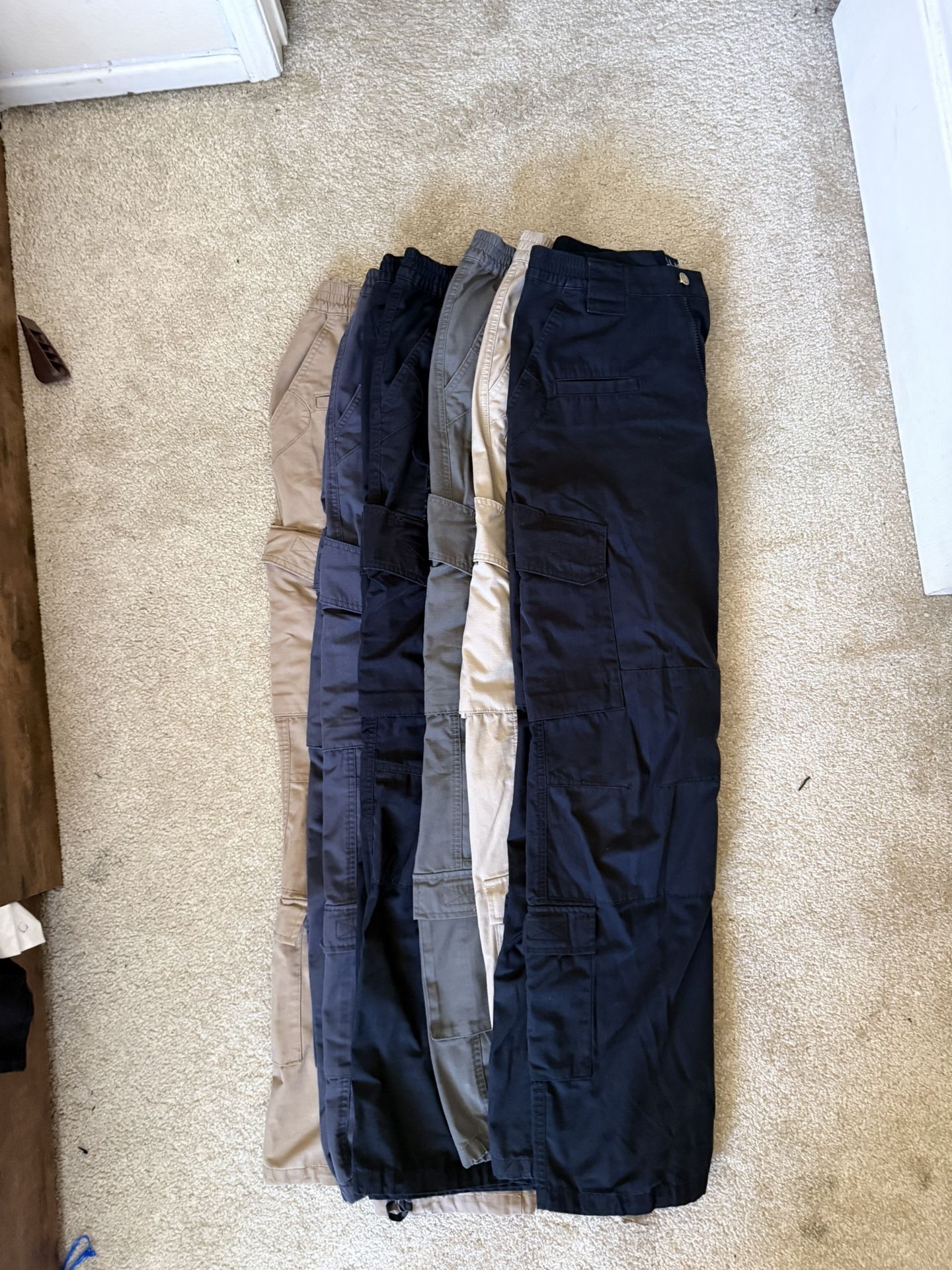 Men’s 30x32 LAPG brand tactical cargo pants. Various colors, all same size. Individual sale or lot discount. Colors: 2x black, khaki, light grey, dark grey, coyote brown. Open to negotiations.
