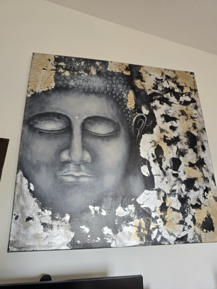 Large canvas with Buddha design in black and gold tones. 40×40