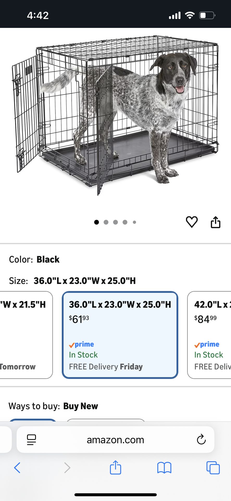 Double door/foldable dog crate Good condition Please see photos for sizing