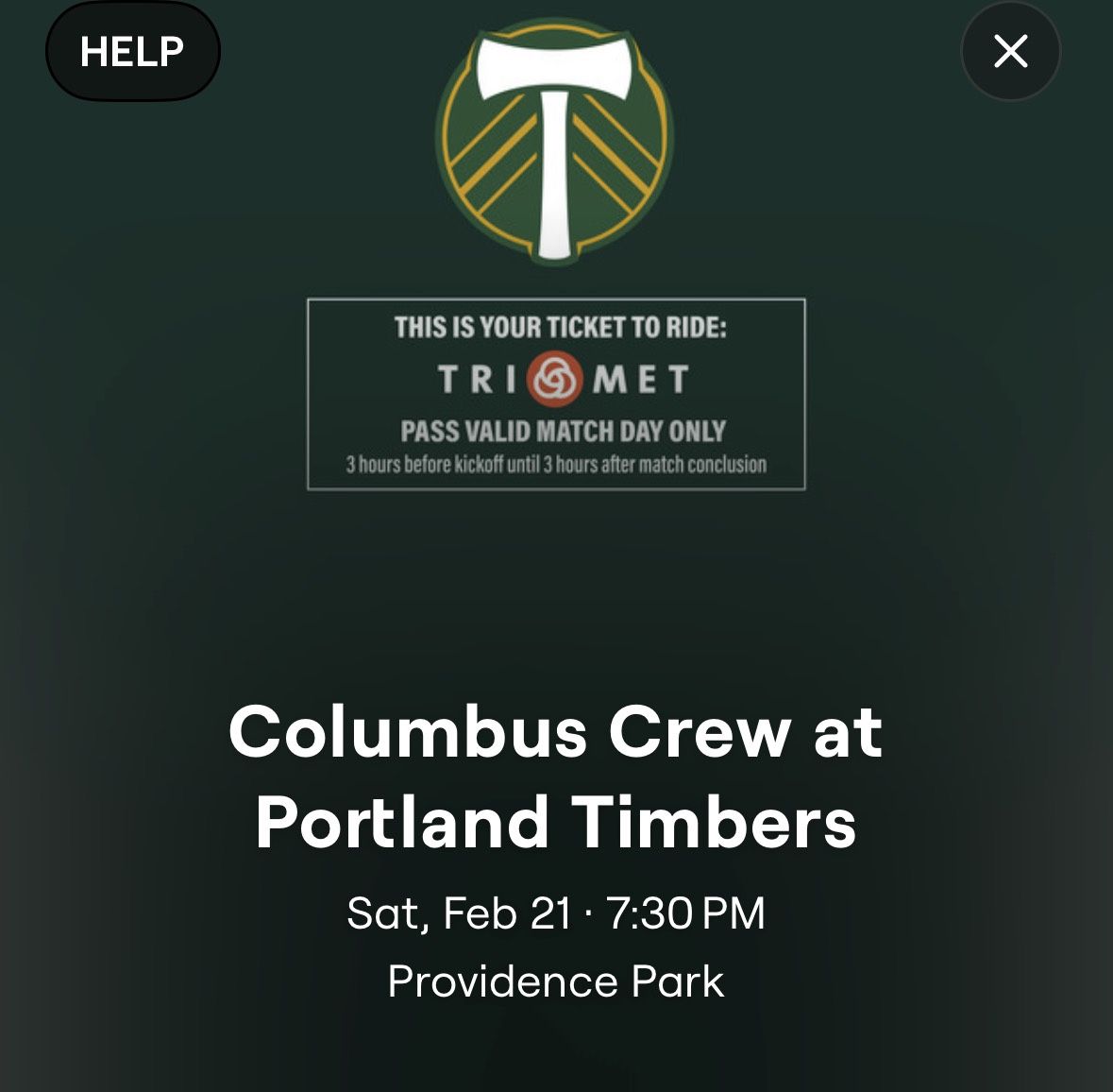 2 Tickets Timbers Versus Columbus Crew Friday, February 21 At 7:30 Pm