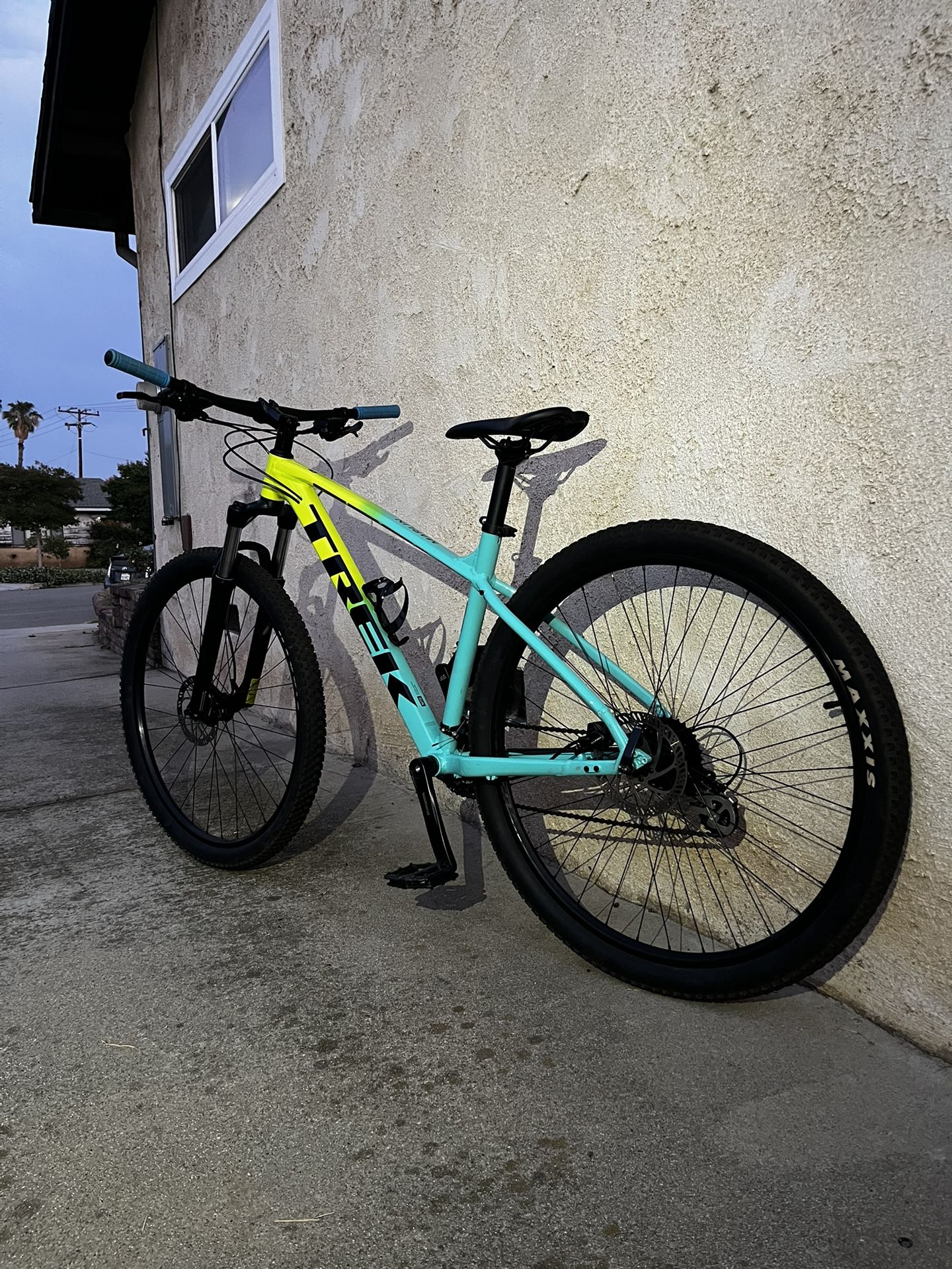 2022 Trek marlin 5 Gen 2 size medium/Large 29r wheel size. Lightweight All aluminum frame Hardly used. Upgraded Maxxis tires 80% treadlife. Shimano 2x8 drivetrain. Tektro Hydraulic disc Brakes. All internal cable routing. Santour 30 front fork suspension with full lock out and rebound adjustability. Wide handle bars for extra stability. Best suited for riders 5’3 to 5’9. Garage kept