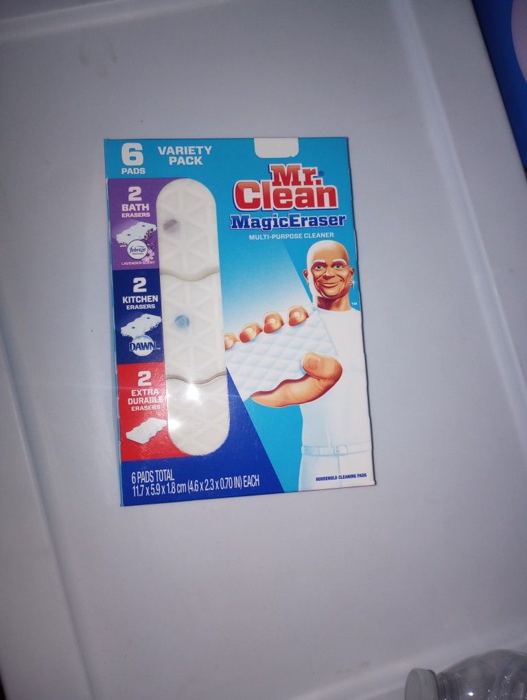 Selling 2 varieties boxes of Mr. Clean MagicEraser. Each box contains 6 pads. 2bath, 2 kitchen 2 extra durable Take both for only $20