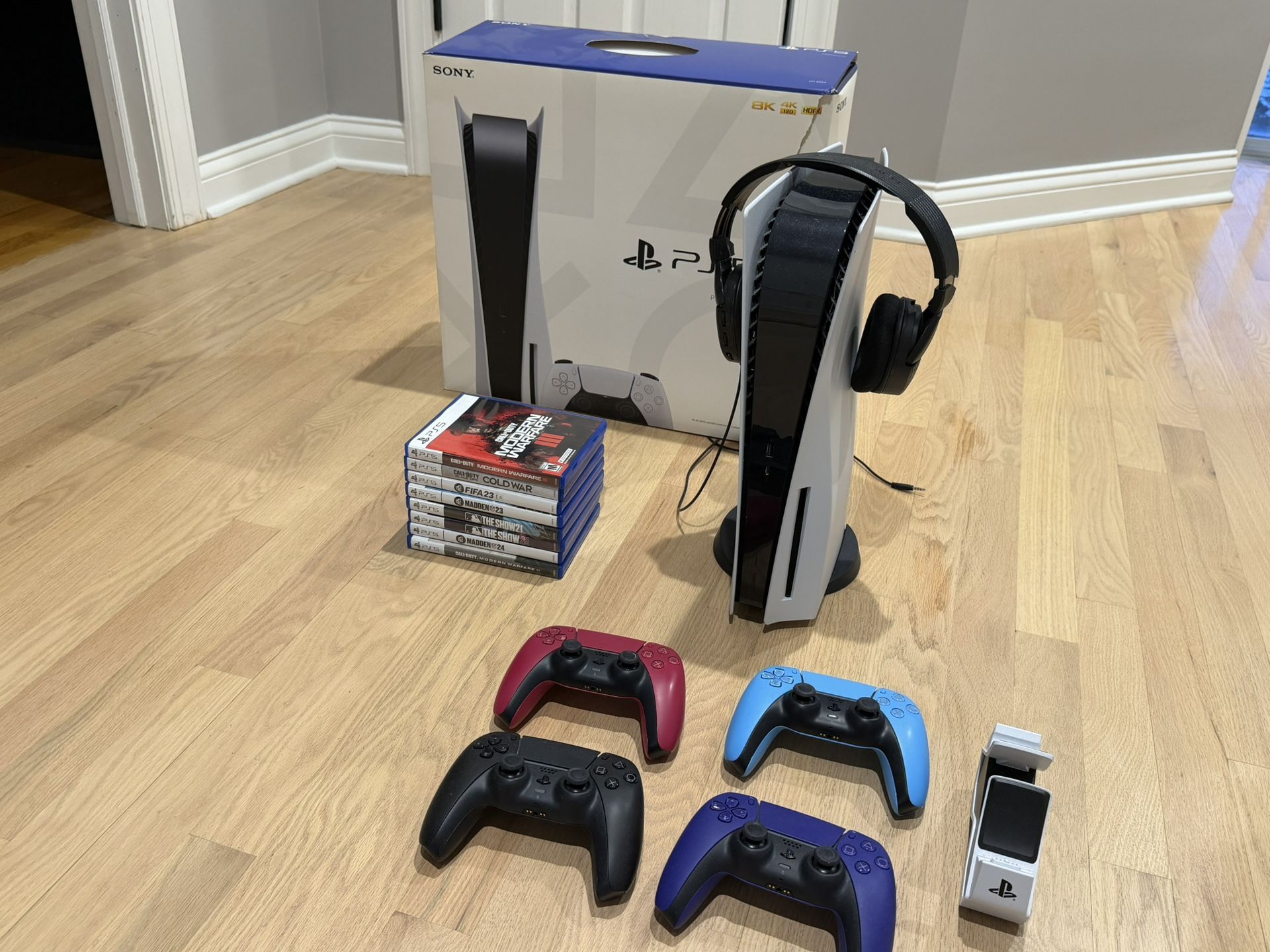 PlayStation 5 Console with Box 4 Controllers with charging station 8 games Headset