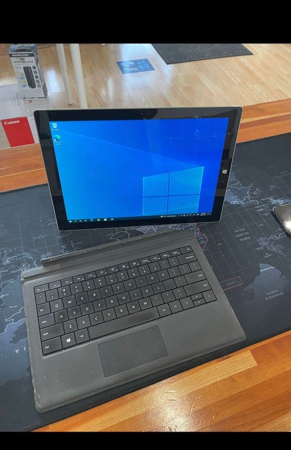 Hello, I am selling Microsoft Surface Pro 3, Touchscreen, Windows 10 Pro Laptop. I factory reset it so it's like new and all accounts and data is removed. It is fully functional you can come and test it out no issues. This is perfect for school, work, students, zoom, travelling, Internet Browsing. It will come with the charger. SPECS: Windows 10 Pro 1.90 GHZ Intel Core i5-4300U Processor 8 GB Memory 256 GB Storage 2160 x 1440 Resolution WiFi// Bluetooth//Front Camera//Microphone Display Port// USB Port//SD Card Slot// Headphone Port. If you have any questions. Please contact me. Thank you