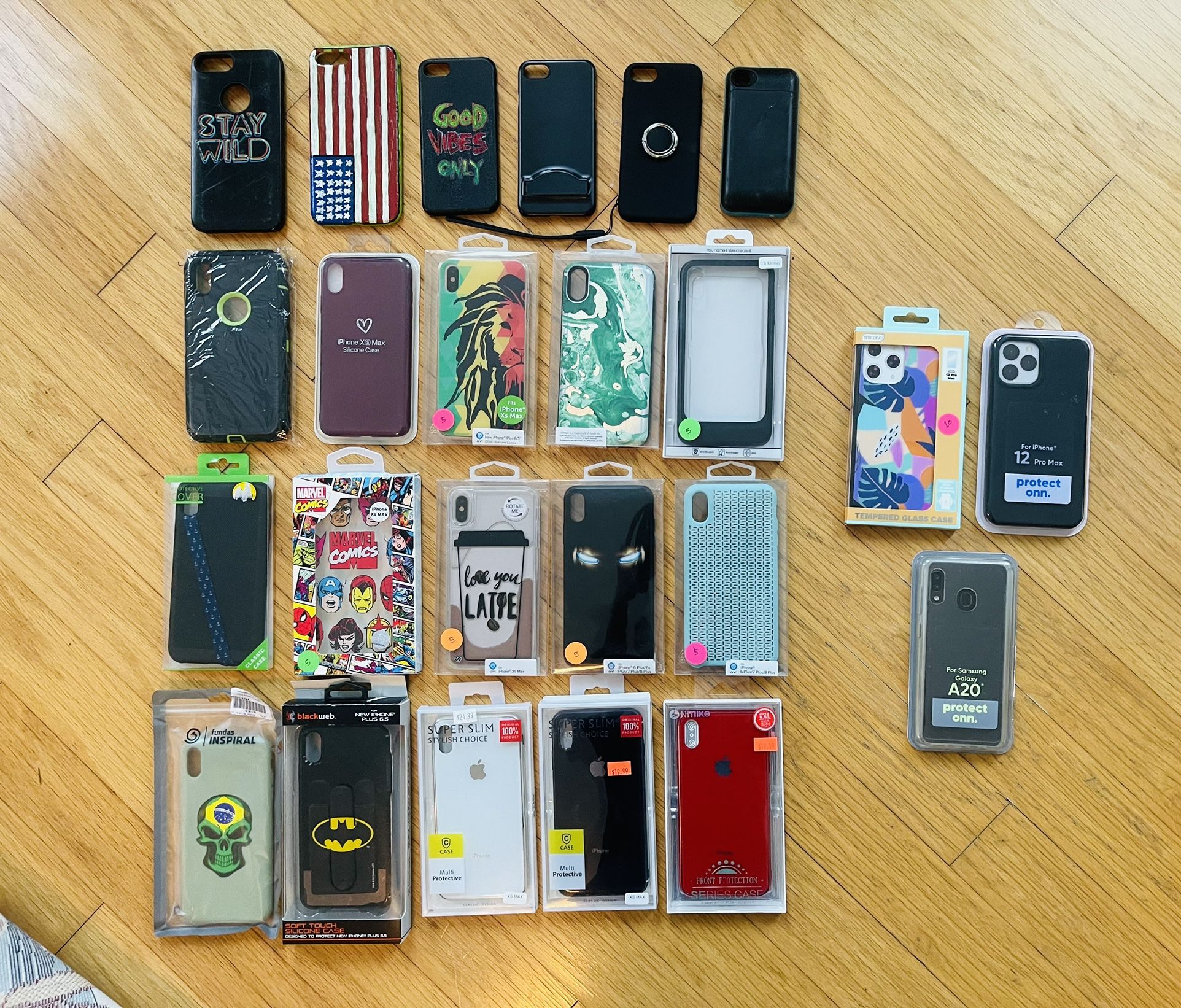 Cases are gently used like couple of times . 12 pro max are brand new . iPhone cases Are : 2 iPhone 12 Pro Max (brand new sealed pack) Autumn $10 black $8 15 pieces Iphone XS Max $5 Each 2 iPhone 7/8 plus $5 each 3 iPhone 6/7/8 $5 each 1 iPhone 4/4s $4 1 Samsung A20 $5 iPhone XS Max all 15 will be $60 as lot $100 takes all as lot . ** Not going to meet up outside less then 5 cases ** Pick up only . No trade or shipping . Thank you 🙏