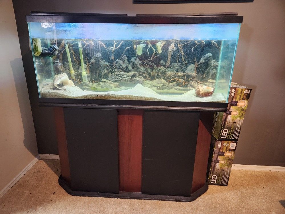 60 Gallon Fish Tank + LED Lights + 2 Water Filters + Air Pump + Other Extras
