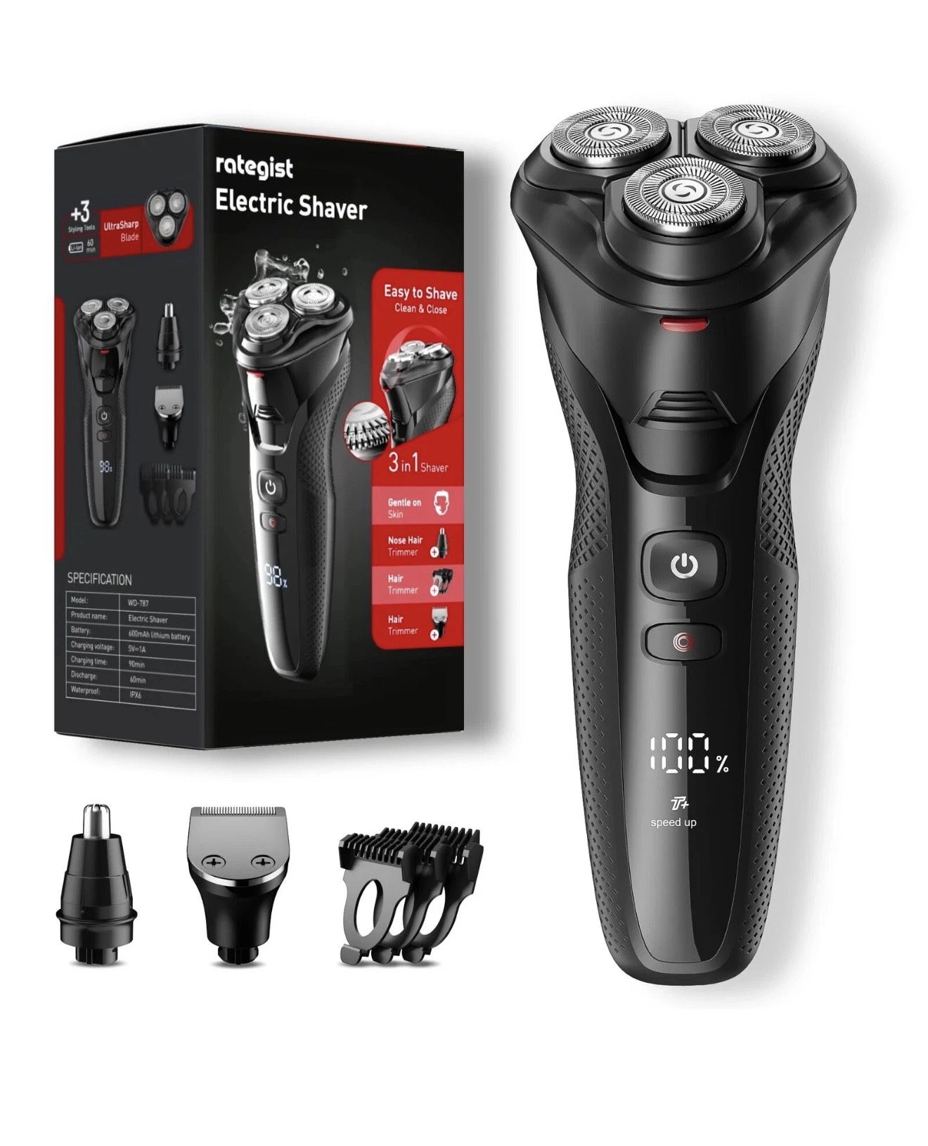 Rategist Electric Shaver WD-787 Wet Dry Cordless Rechargeable Nose Hair Trimmer. 3