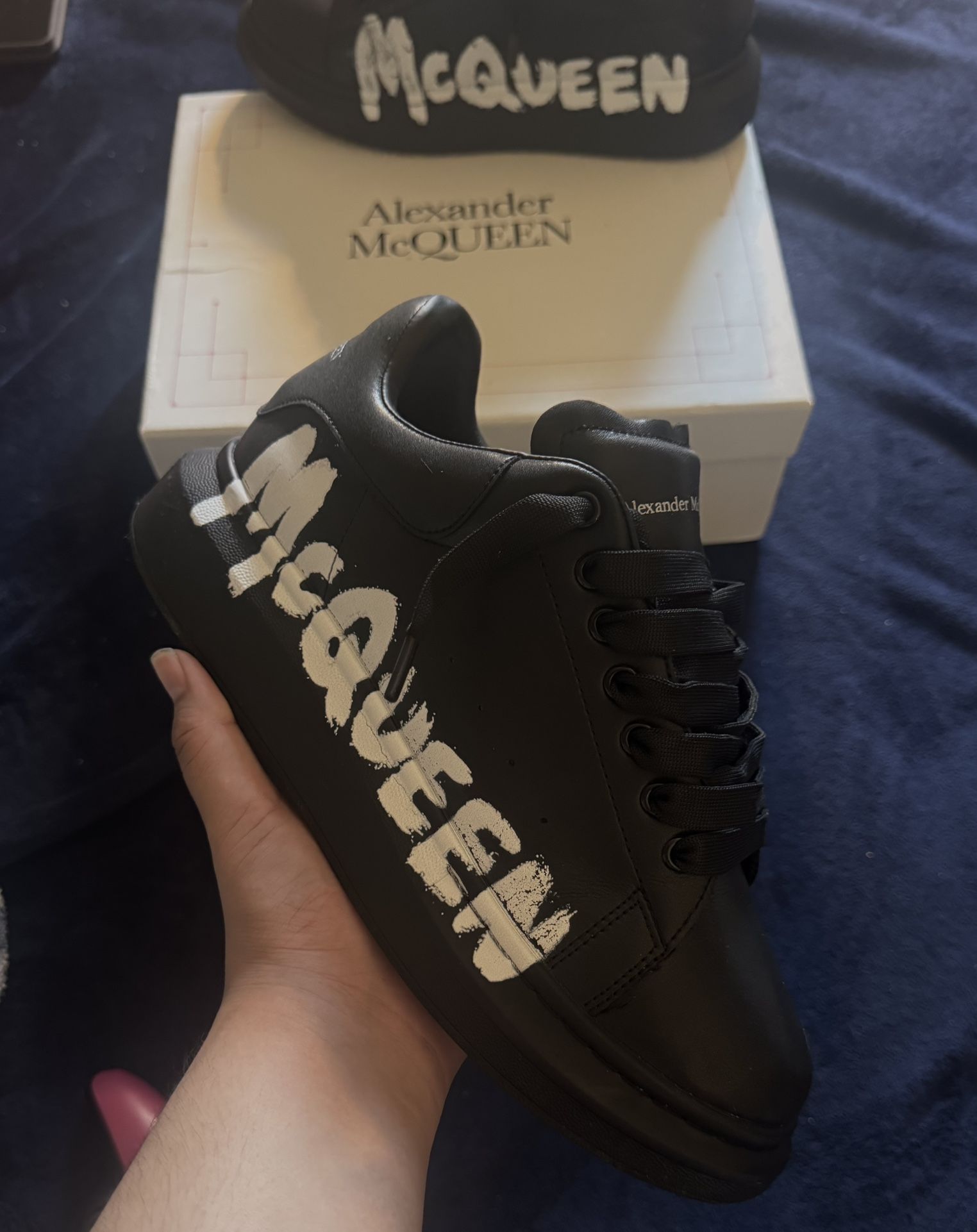 Alexander Mcqueen "Graffiti" Men Sz 42eu|9us 8/10 Condition PICK UP 80$ Used a bit very little creasing and slight paint cracking on the M on one shoe Can be easily fixed with a paint marker or paint does come with box.