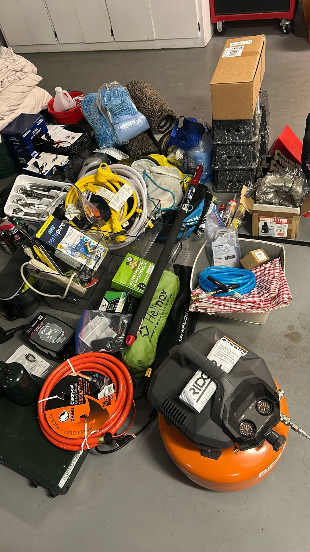 Will sell individual pieces. Helping out my sister and brother in law during a tough family time. All accessories for $750 Anything you could need or want. Must pick up in Lake Oswego Rigid air Compressor Water hose clean out brand new never used propane stove with two bottles Brand new electric cord for the plug-ins two extras Two sleeping bags with two pillows and sheets and blankets Black & Decker little vacuum The post to set the RV on You have the stop the red to put them behind the tires there’s 4 of them Hydraulic trailer tongue still in the box Wash wax mop to reach it With the wash, mops heads carpets for outside DVD player with the speakers Sewer hose support So much more I can’t even name it all Some still in box never used!! MAKE AN OFFER