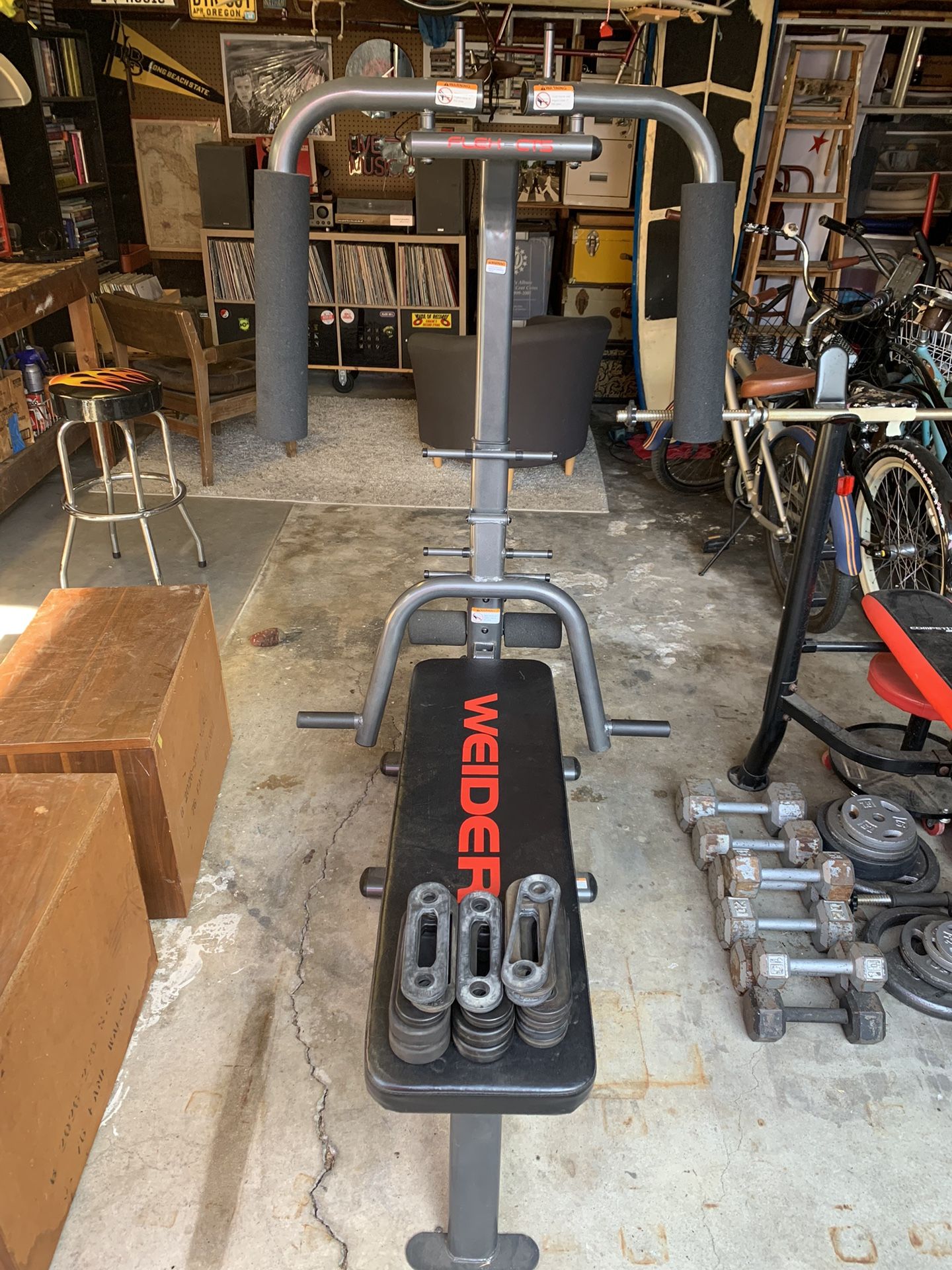 Comes with 475 bounds worth of weighted bands. Worked really well, I got free weights instead that is why I don’t need it.