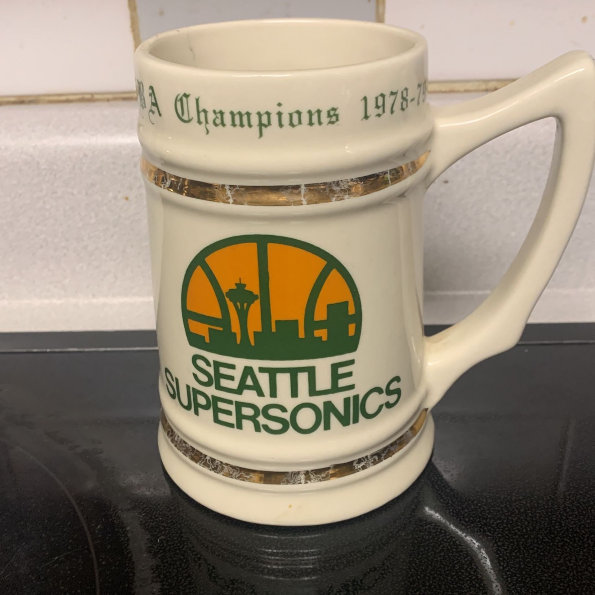 Seattle SuperSonics collectors championship stein. No chips or cracks. A few imperfections in the gold leaf but this stein is from 1979! Make a Sonic fan happy on Christmas this year.
