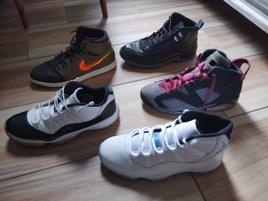 For 5 pair bundle. All for $525 or individual prices below. Jordan 11 Legend Blue Sz. 11 NIB $200 Jordan 11 low Easter Sz.11 no box, great condition. $125 Jordan 6 Bordeaux sz.11 No box, like new. $125 Jordan retro nouveau military green Sz. 11.5. Great condition, no box. $95 Jordan 12 Utility Sz. 11 no box Good condition. $85