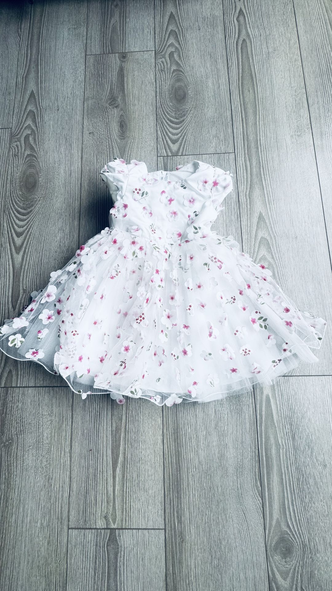 White Floral Baby Girl Dress – 3D Flower Tulle Dress – First Birthday Outfit – Flower Girl Dress – 6-9M 9-12M 12-18M