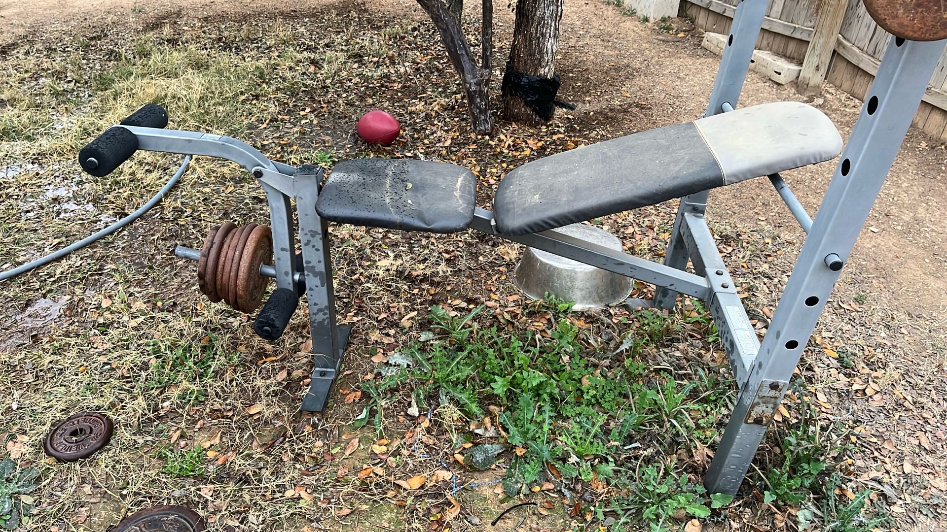 Pick only has been outside so needs a good cleaning and the weights are rusted