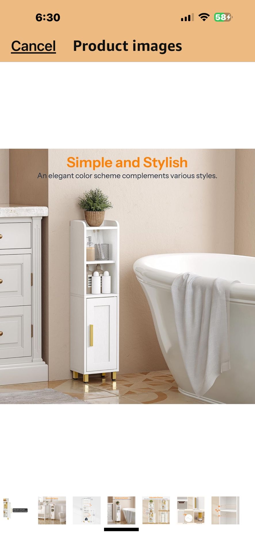 Small Bathroom Storage Cabinet, Narrow Corner Floor Cabinet with Door and Adjustable Shelf, 7.9" L x 5.9" W x 31.5" H, Bathroom Organizer for Small Sp
