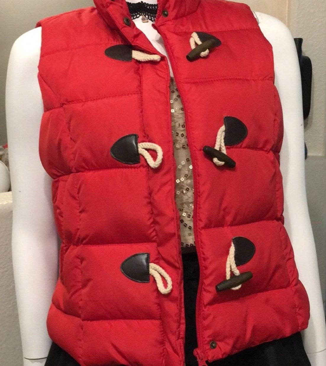 Red Puffer Vest with Zipper and Toggle Closures In good condition