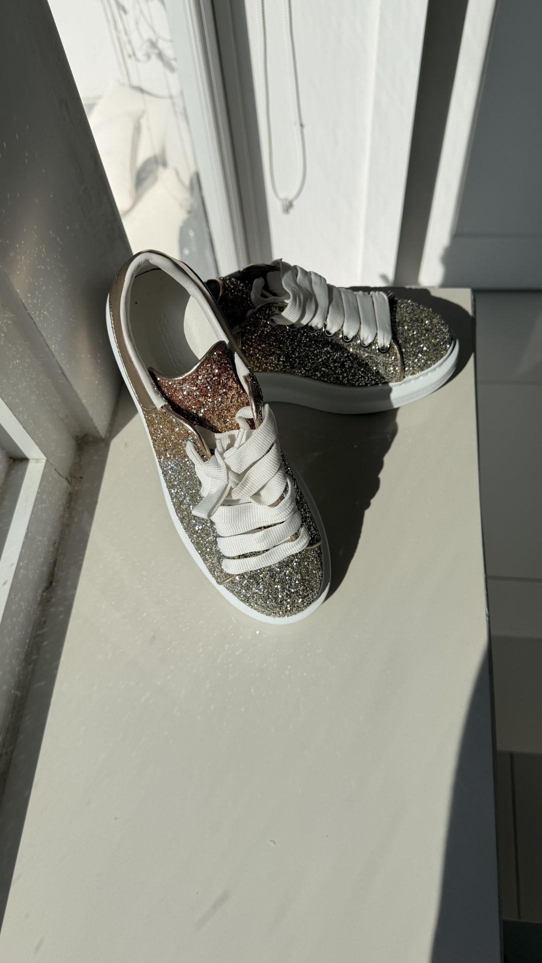Gold, gold rose and silver glitter Alexander McQueen shoes, brand new