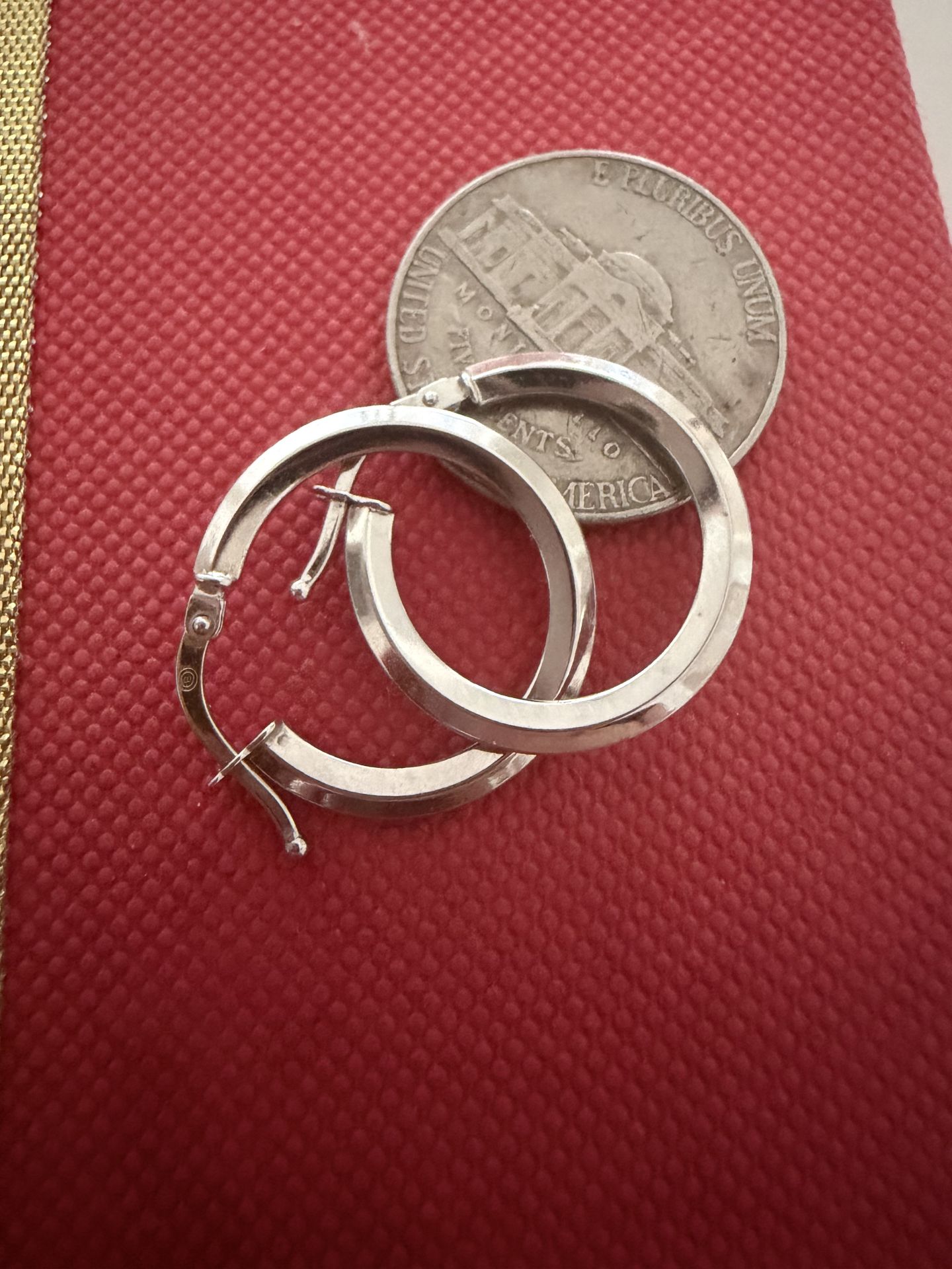 14K WHITE GOLD HOOPS SIZE OF A NICKEL