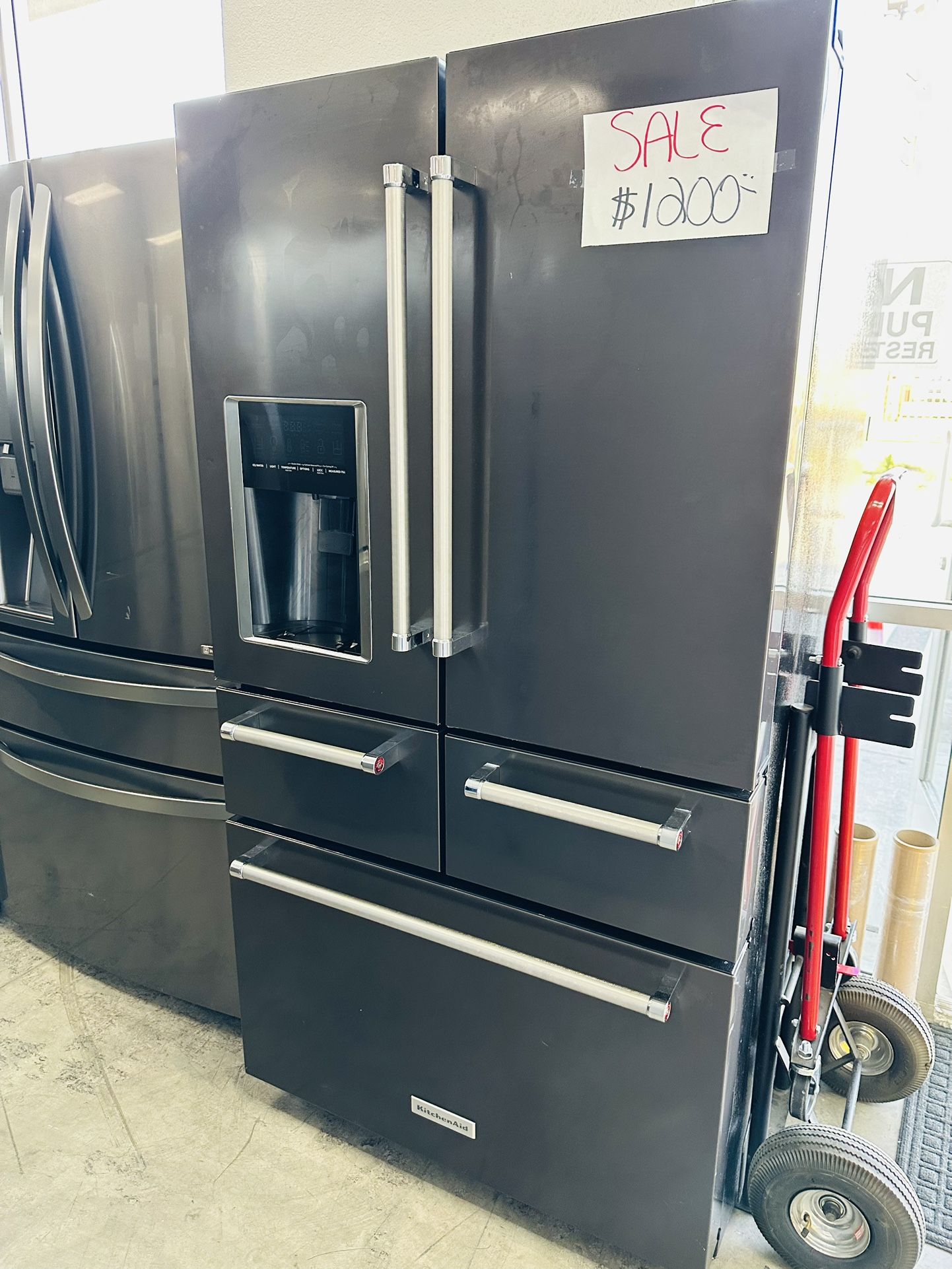 Black stainless kitchen aid 5 doors refrigerator Used 1 year warranty Ask for more info