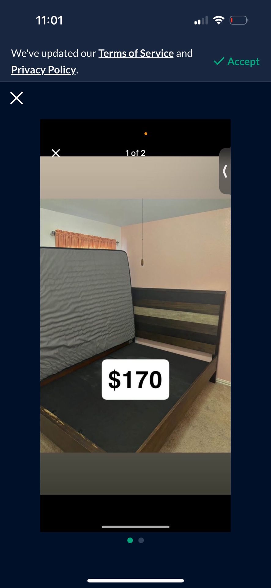 queen bed frame w nightstand included , price in picture is not actual price , repricing it lower.