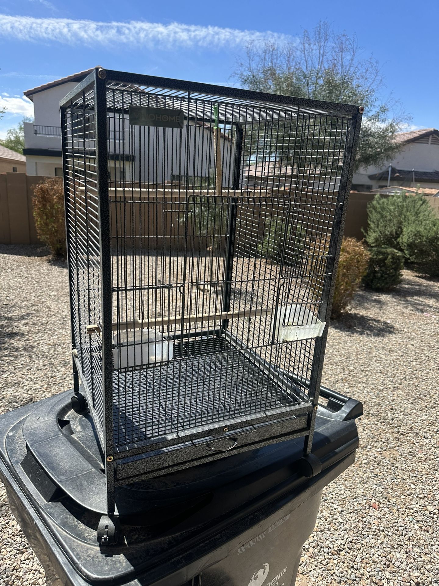 Like NEW!!!! VEVOR Bird Cage, 18 x 18 x 30 inch, Open Flat Top, Wrought Iron Bird Flight Cage with Perches, Slide-Out Tray and Plastic Feeders, Casters, Black $55
