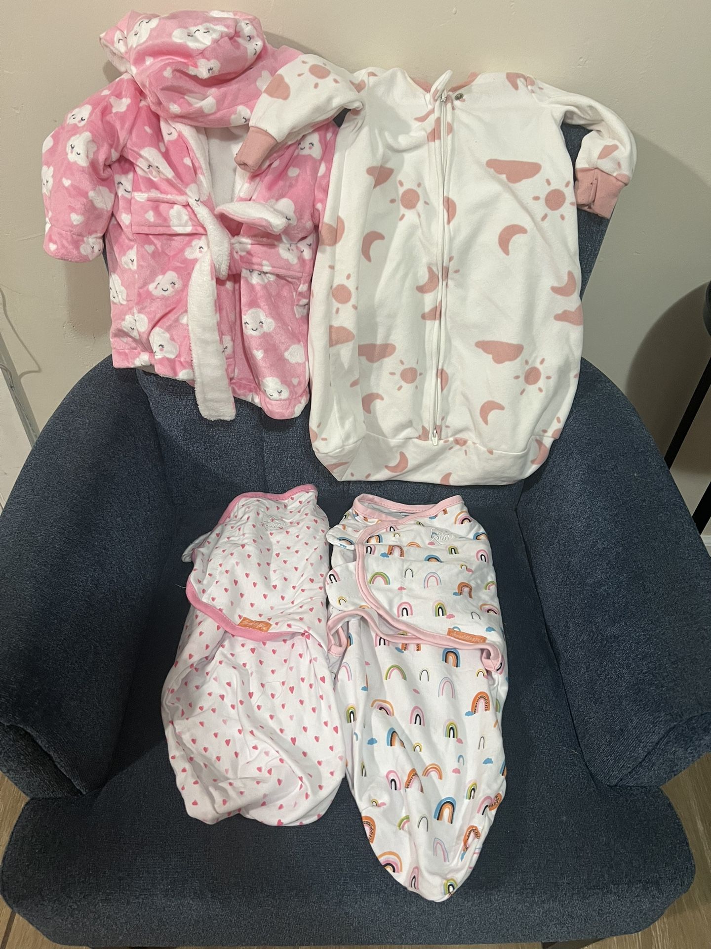 3 swaddlers 1 robe $15 for all pick up in paramount or shipping available 0 to 3 months