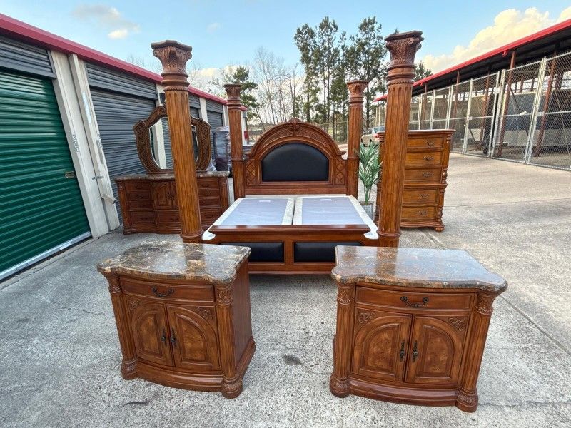 King bedroom set used in Great condition real solid wood marble tops Price firm I can do delver Recamara King usada en excelentes condiciones Puedo hacer entrega