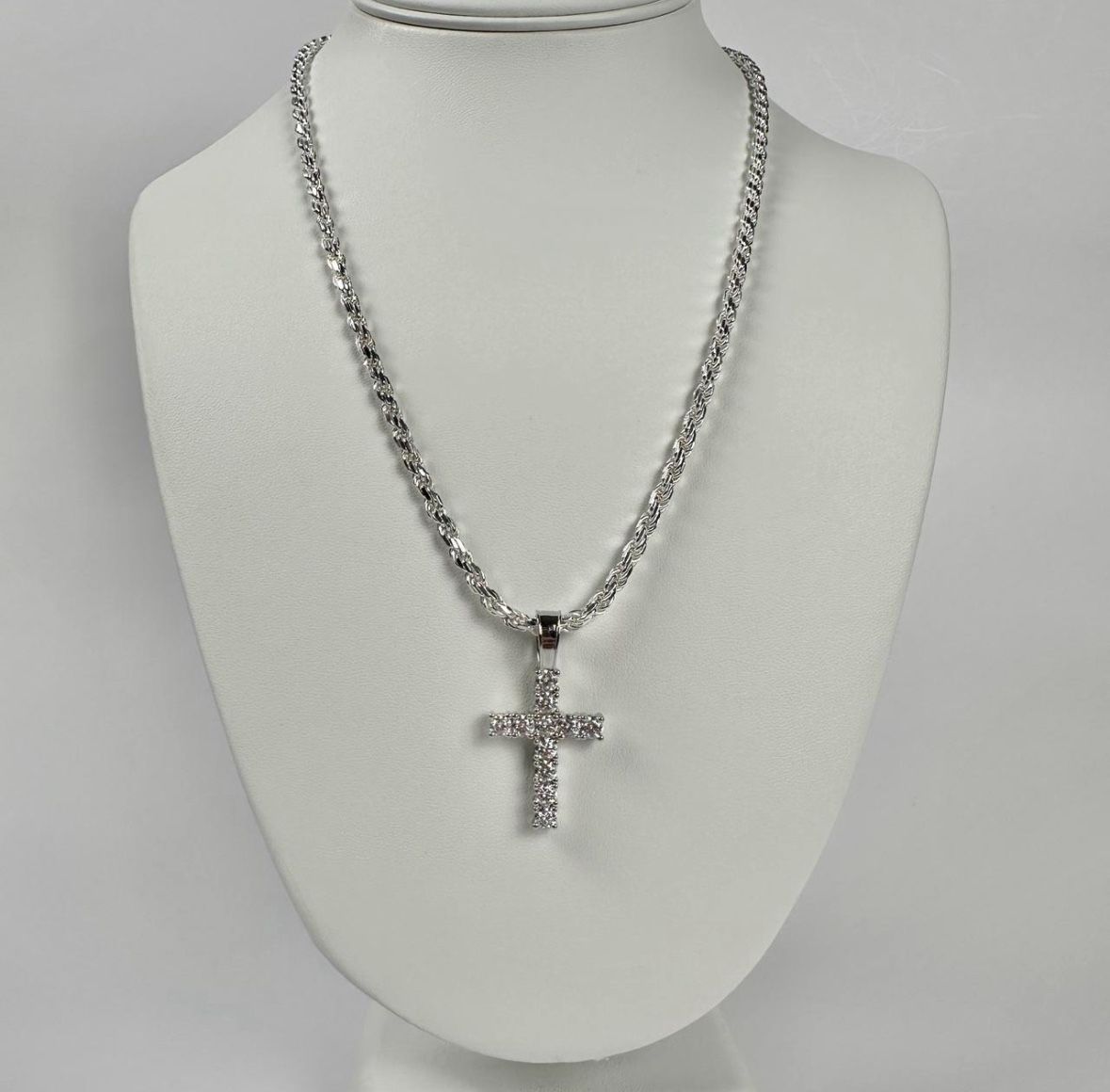 .925 Sterling Silver Rope Chain And VVS Moissanite Cross Pendant