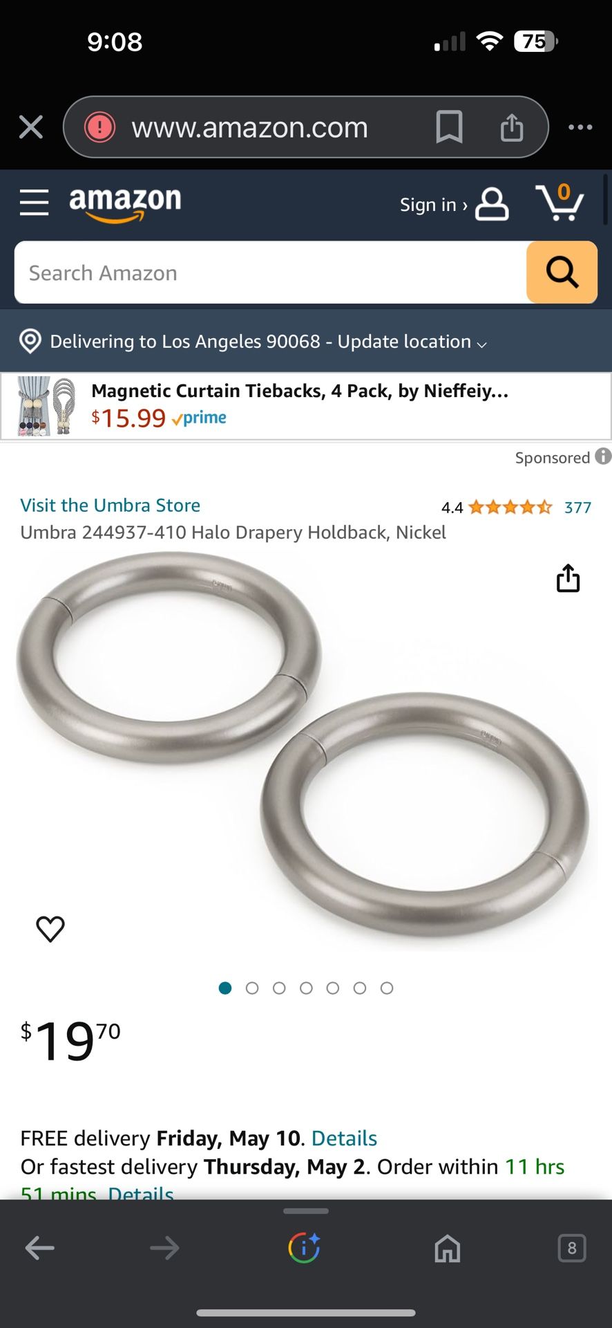 if you’re looking at these, you probably know they are a great and cool way to hold back curtains. simple sleek stylish! ths is for 3 pieces total all in good working condition. check the price on Amazon, and check it here! if interested, we meet everyone at gelsons supermarket in the parking lot, at 5877 franklin avenue los angeles ca 90028 between bronson and canyon. big safe easy to get to!!! HOLLYWOOD sign area, but easy to reach in the flats. CA$H only and exact change please i don't carry any bills! THANKS.