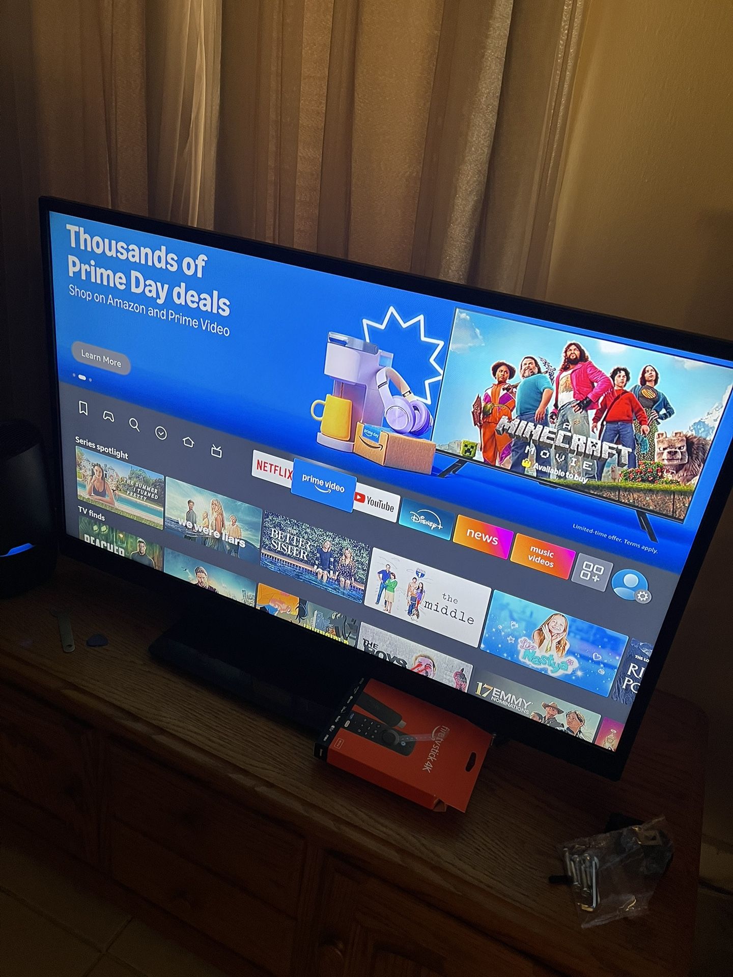 TV has not been used and has been sitting. Perfect condition. Includes Amazon Fire Stick.