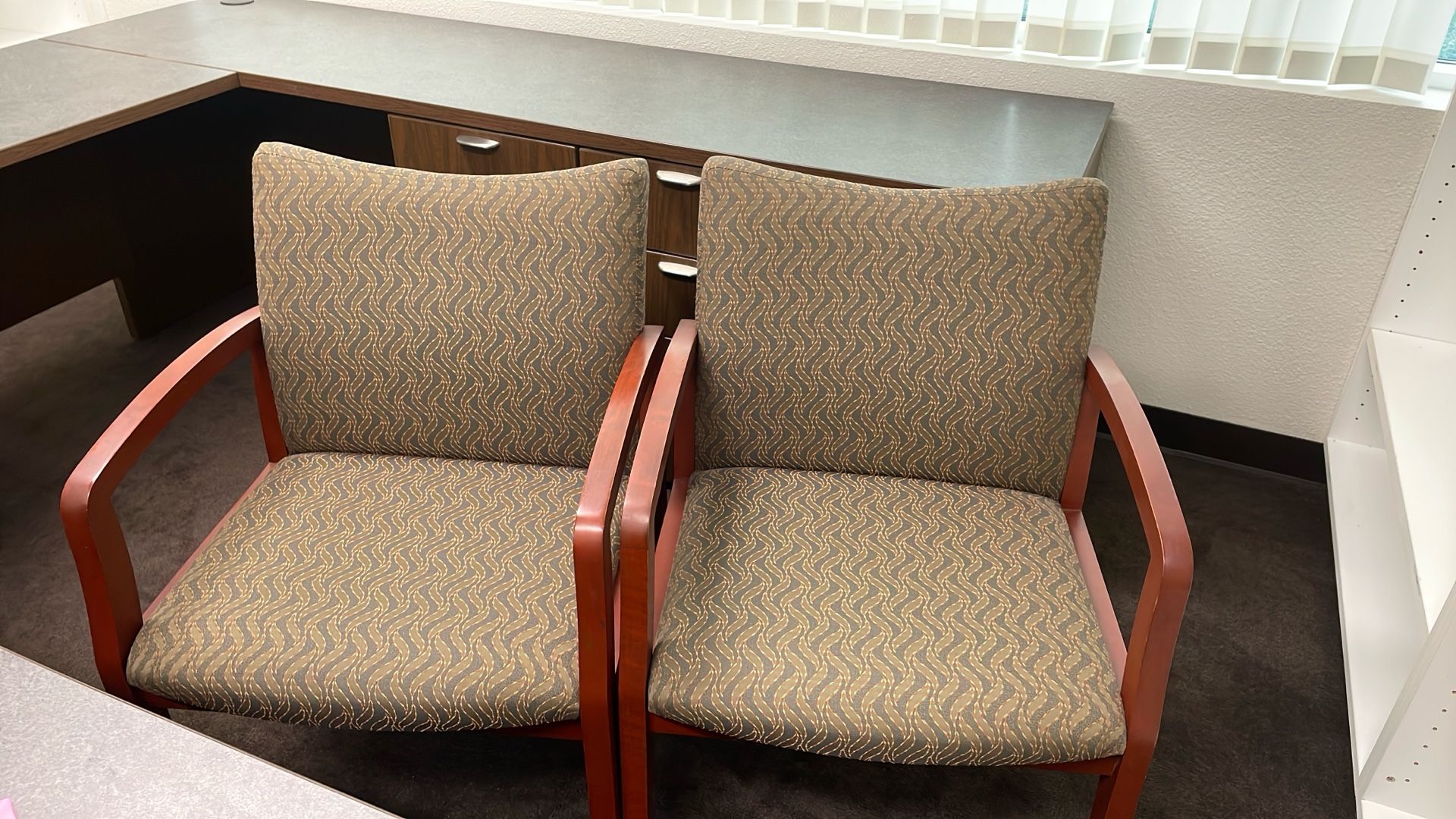 If it’s posted it’s available Great condition Sold together 22” wide Tallest point 33” Depth approximately 19” See other listings for more office furniture