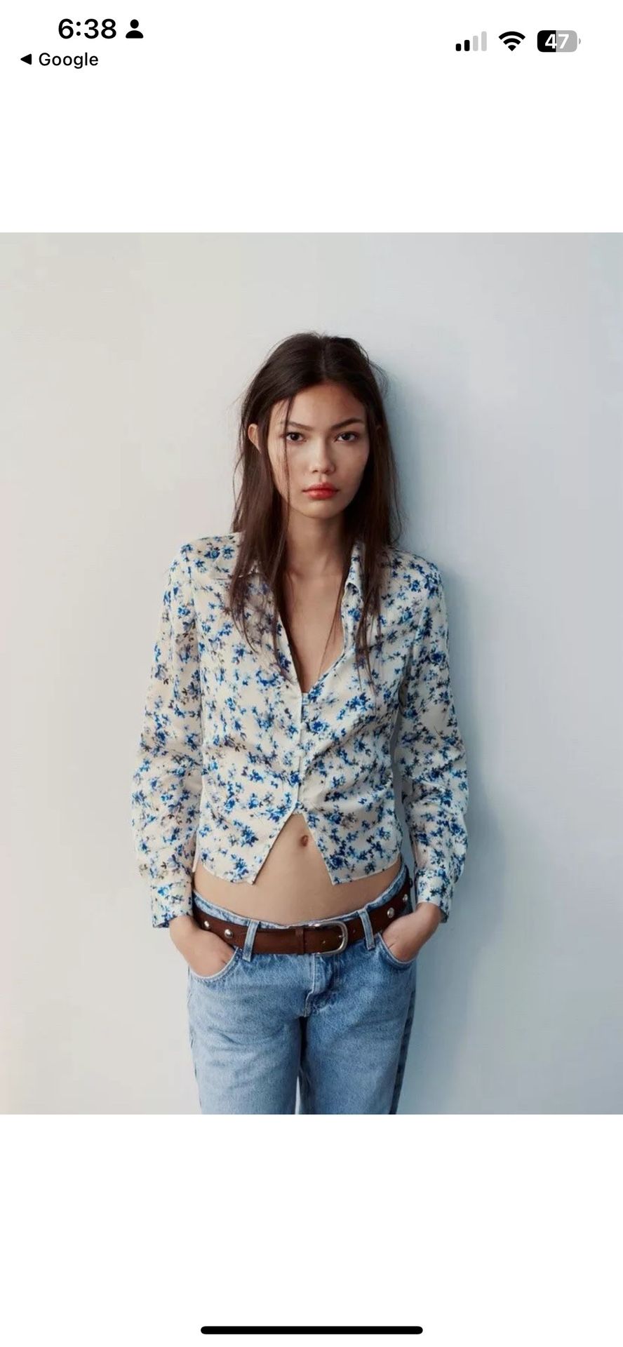ZARA NEW WOMAN SS24 BLUE WHITE PRINTED FITTED SHIRT size Medium