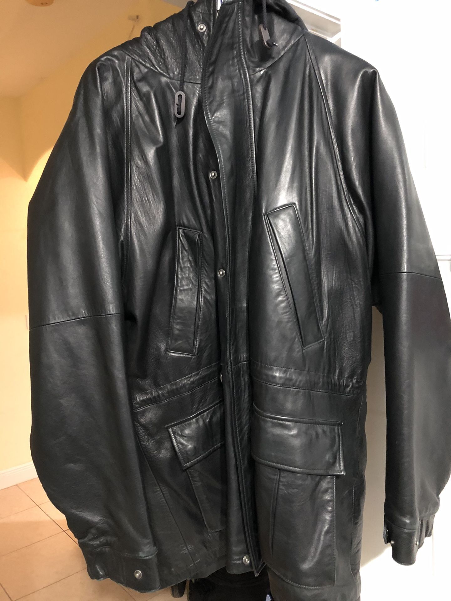 This jacket/coat is in immaculate condition. It’s a black rich, thick, soft leather by Ralph Lauren. Size Large with a hoodie. Make me an offer!