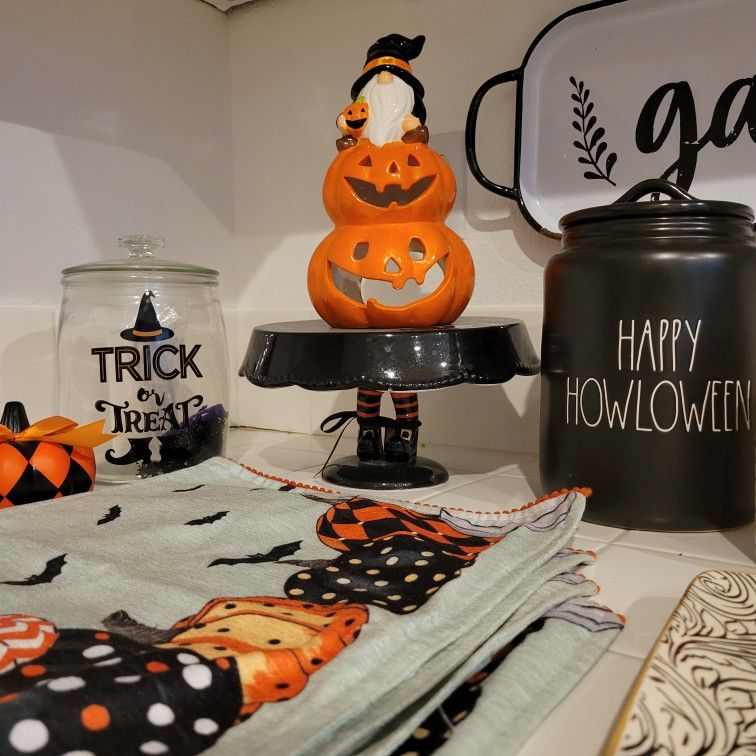 Rae Dunn coffee mugs cake platter cookie jar ceramic pumpkins placemats etc.
