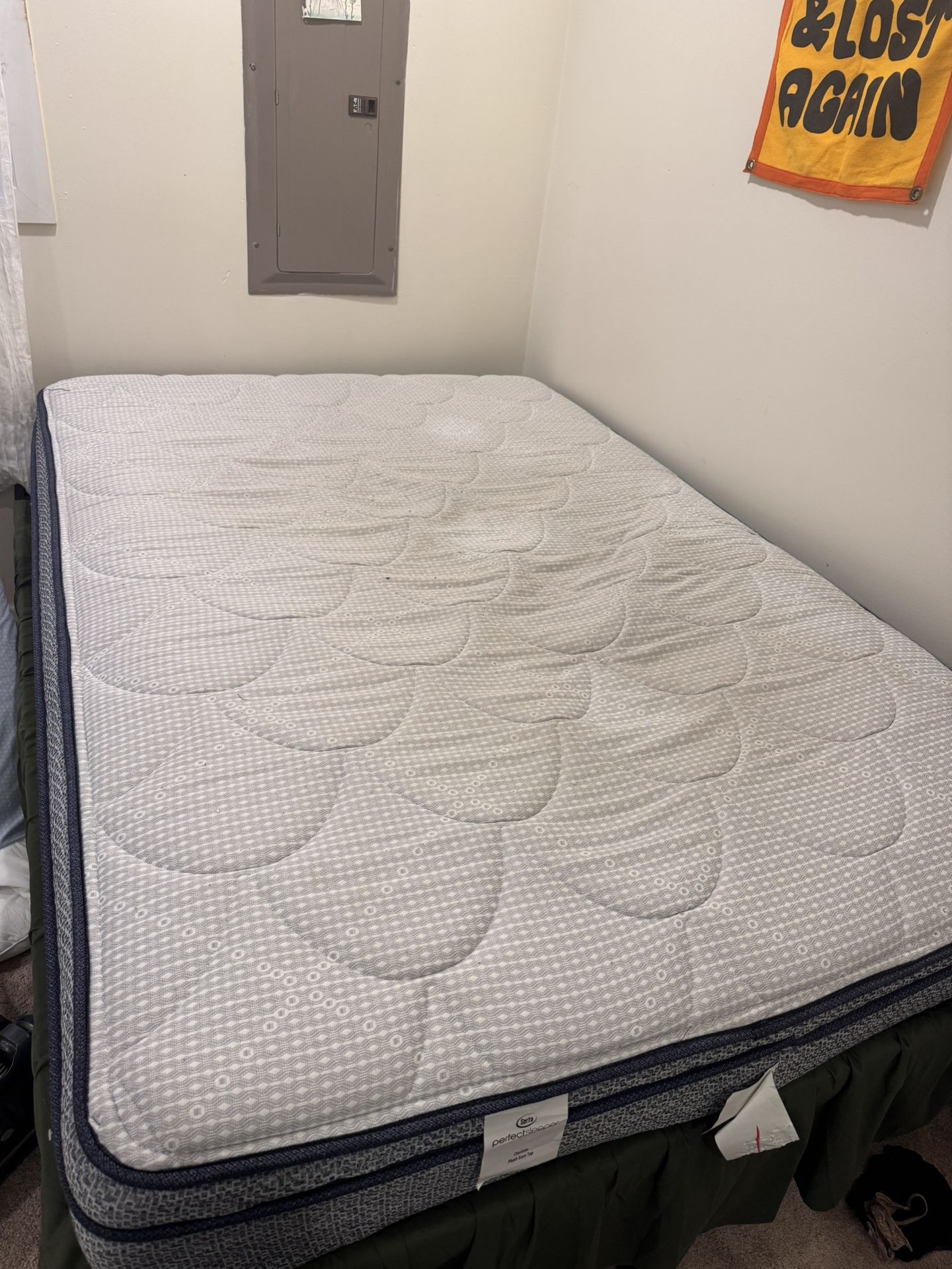 Full mattress for sale. Willing to include mattress topper for extra cushion if desired. Still very comfortable but I am moving.
