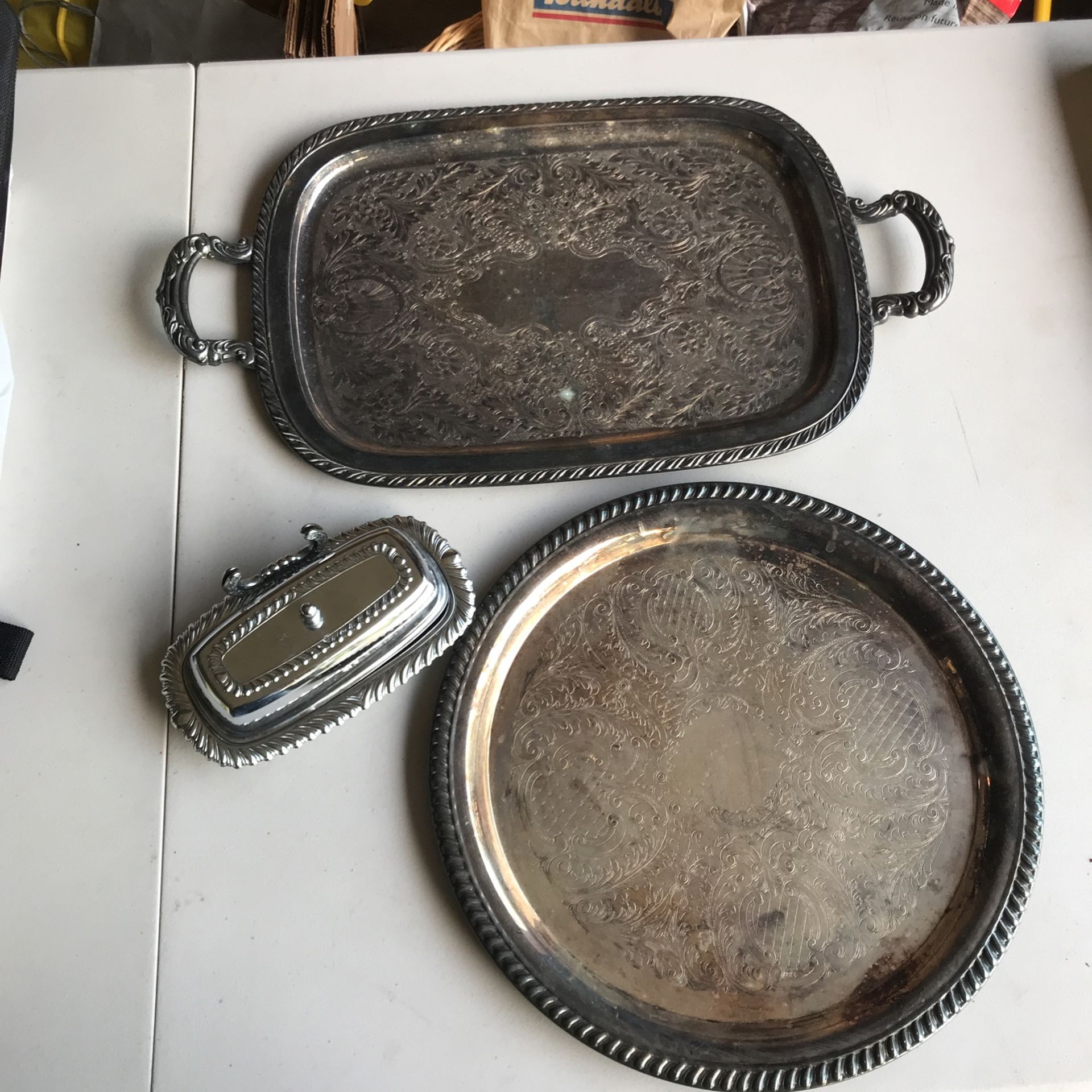 2 Silver Trays, 1 Butter Dish