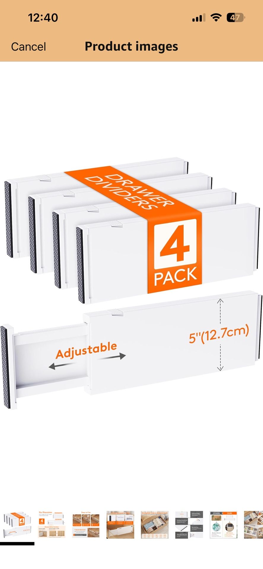 4 Pack 5" High Drawer Dividers 34-56cm/13.5-22" Adjustable Drawer Organizer for Clothes/Utensils, Expandable Drawer Separator in Dresser/Kitchen/Bedro