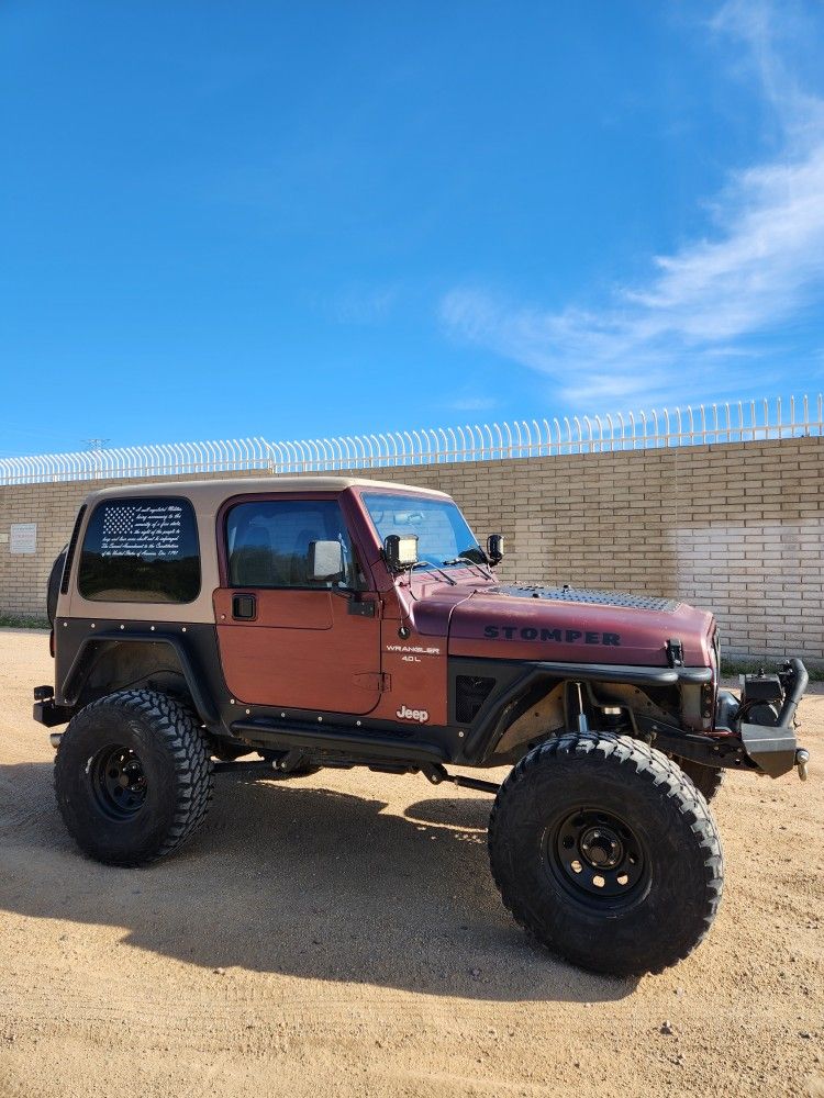 2001 jeep wrangler sahara 4.0 inline 6 5 speed Cold ac and hot heat 231 tcase with s.y.e. 4" rockjock daul rate springs front & rear Rockjock bump stops Rough country long arms front and rear Detroit locker rear Detroit tru-trac front 4.56 gears Warn winch with new synthetic rope 35" procomp mt tires w/ matching spare. New bilstein shocks New battery Aluminum radiator New fan clutch MBRP exhaust Recent full synthetic oil and filter change Sub and amp Best top trailmax ll rear seat 260k miles on odometer 60k on engine from a 2003 Also have savvy aluminum half doors for it And a bikini soft top Runs and drives great Clean title