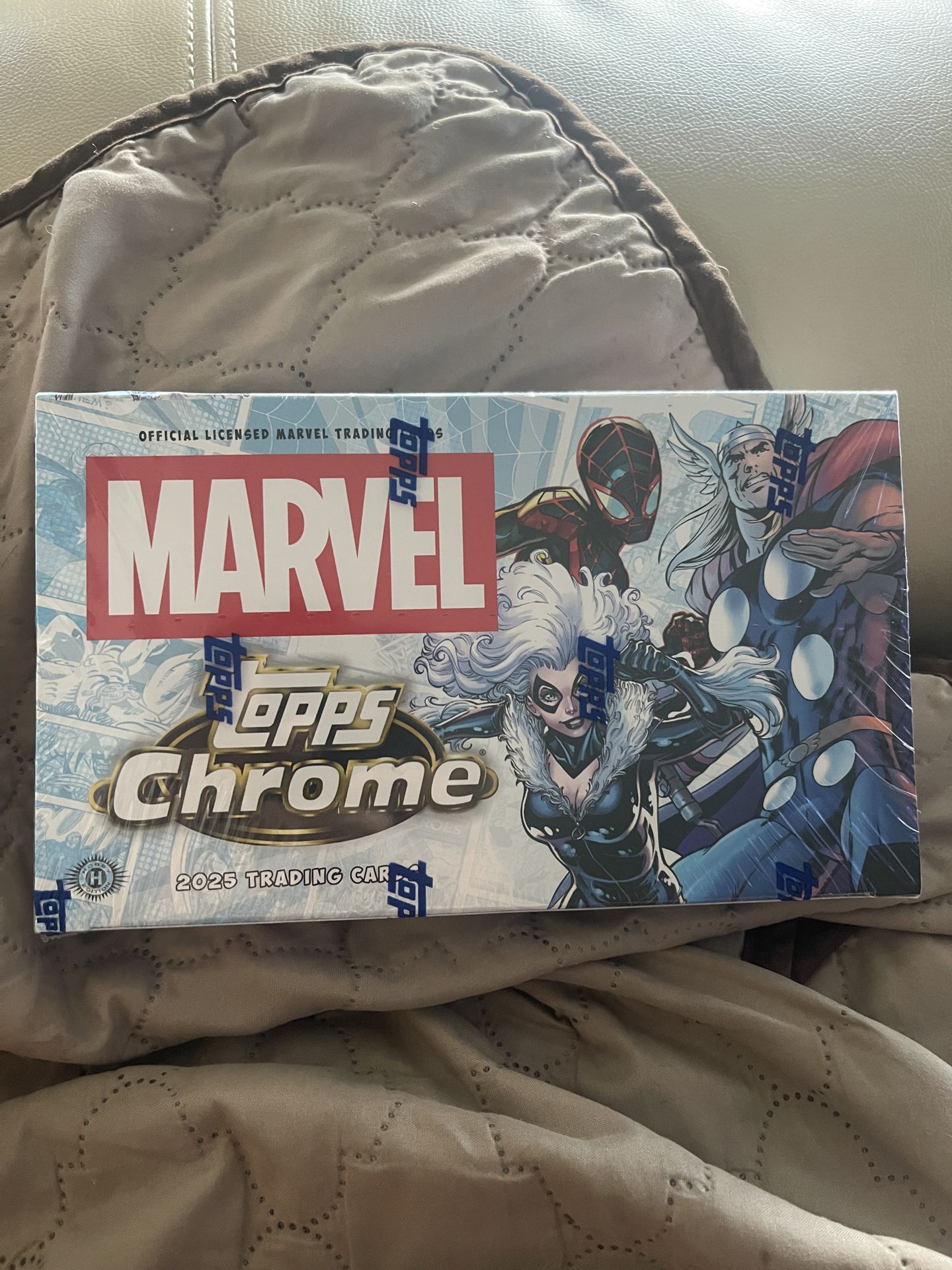 π₯ 2025 Topps Chrome Marvel Trading Cards Sealed Box π₯ Brand new 2025 Topps Chrome Marvel Trading Card Box, factory sealed and untouched. This officially licensed Marvel set features premium chrome-style cards with stunning artwork of fan-favorite characters like Spider-Man, Black Cat, Thor, and more. Picked up only.