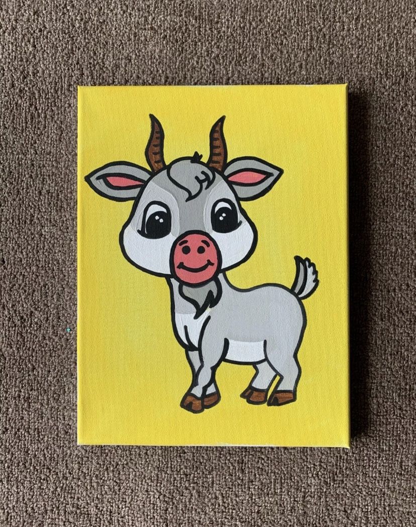 Acrylic Cute Baby Goat Canvas Painting -- Hand Painted -- Original (NEW). This painting is perfect for a toddler's room or to be gifted. Hand painted by the seller. Free local pickup or can be shipped within US (excluding Alaska, Hawaii, Puerto Rico, Virgin Islands).