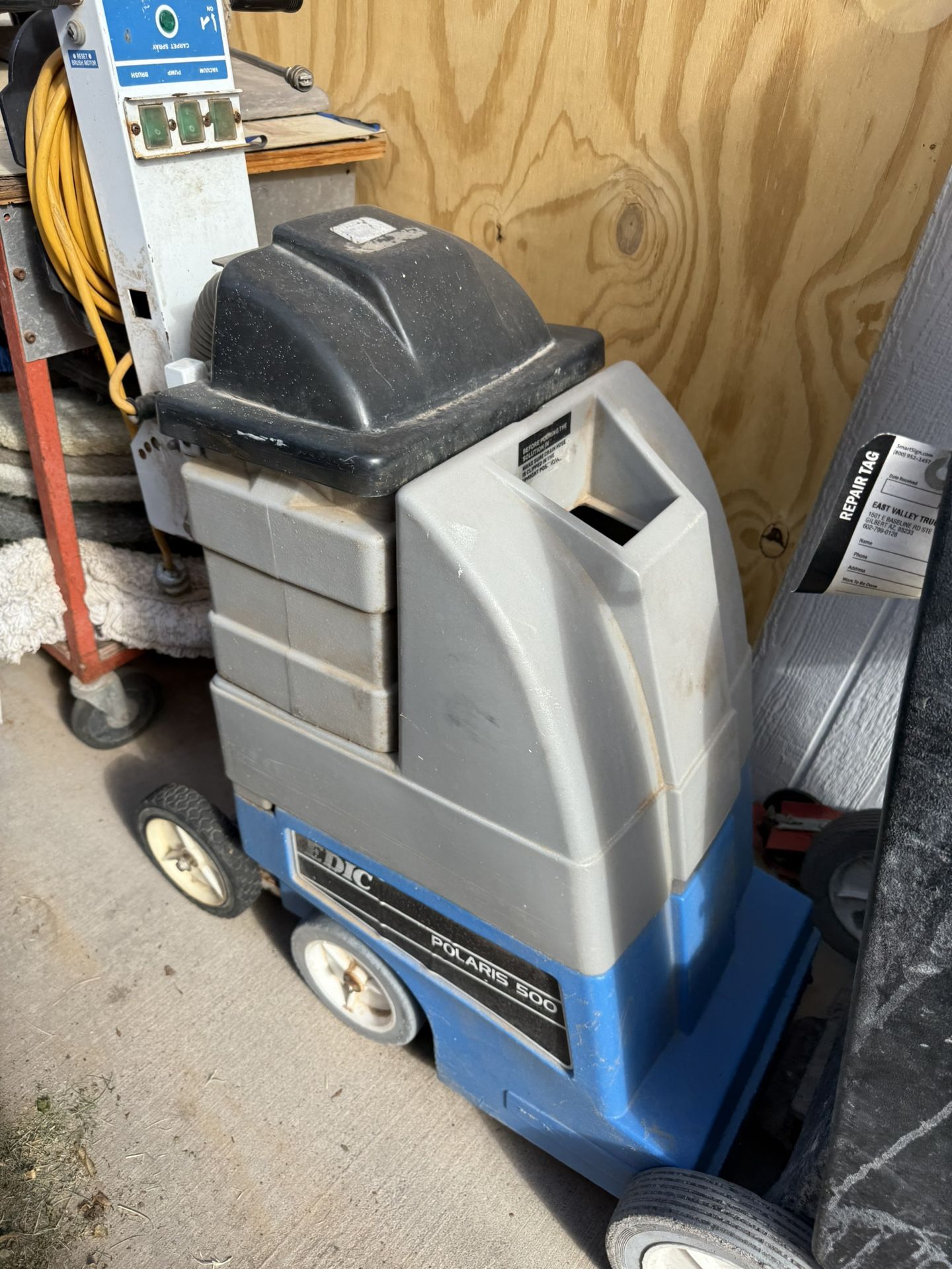 Edic Polaris 500. Retail says it’s $4000+ but it’s a pull back carpet cleaning machine. I got this in a bundle deal so I’ve Never used it on a job but I can see the suction, spray and spinning scrub bar works. Might need some new tubes for the vacuum in the back - look at pics. Asking $400 obo would like to sell asap.