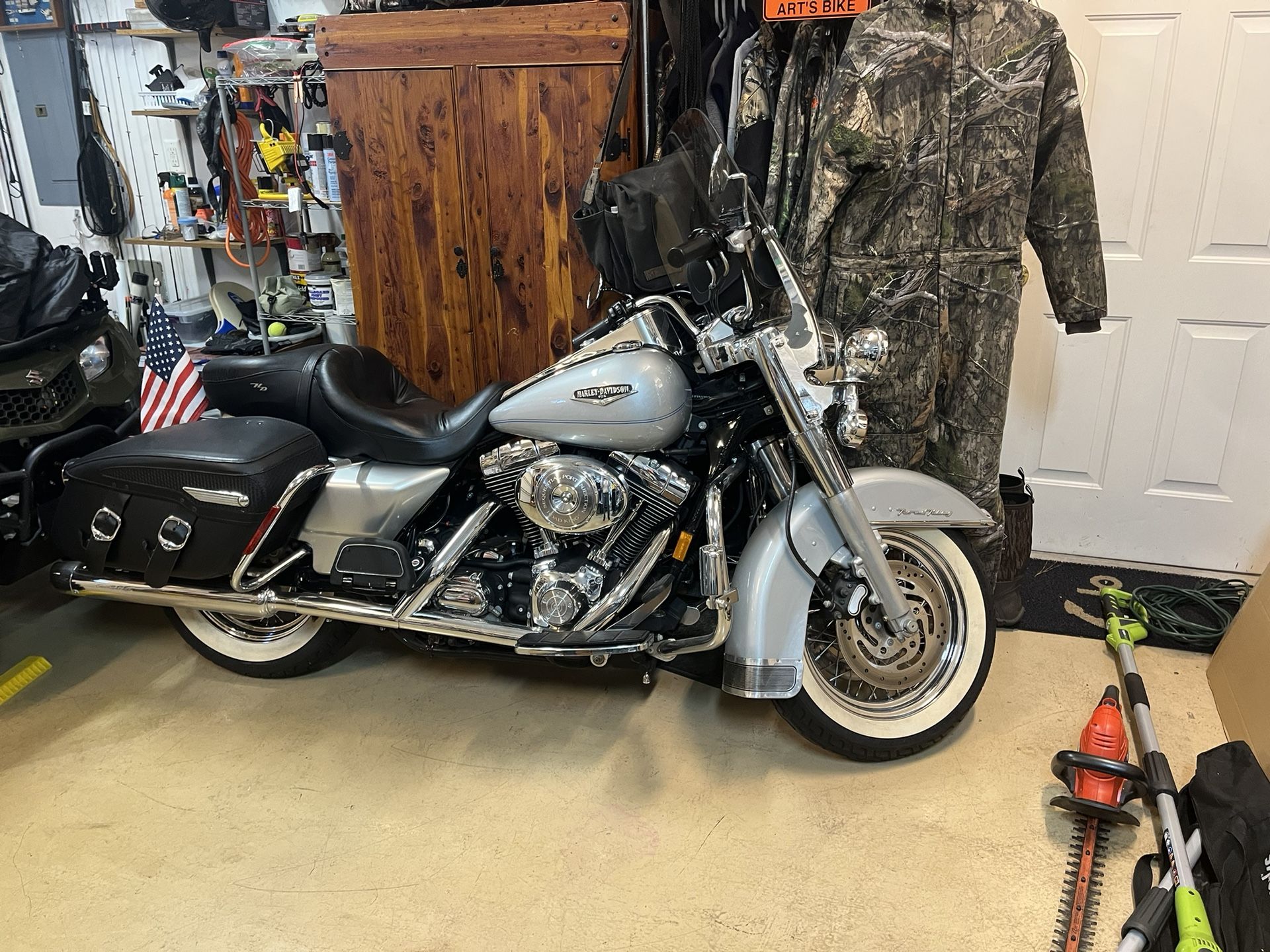 Mint condition Road King. Only 8408 miles on it. A must see bike. Silver with white wall tires. $7500 or best offer.