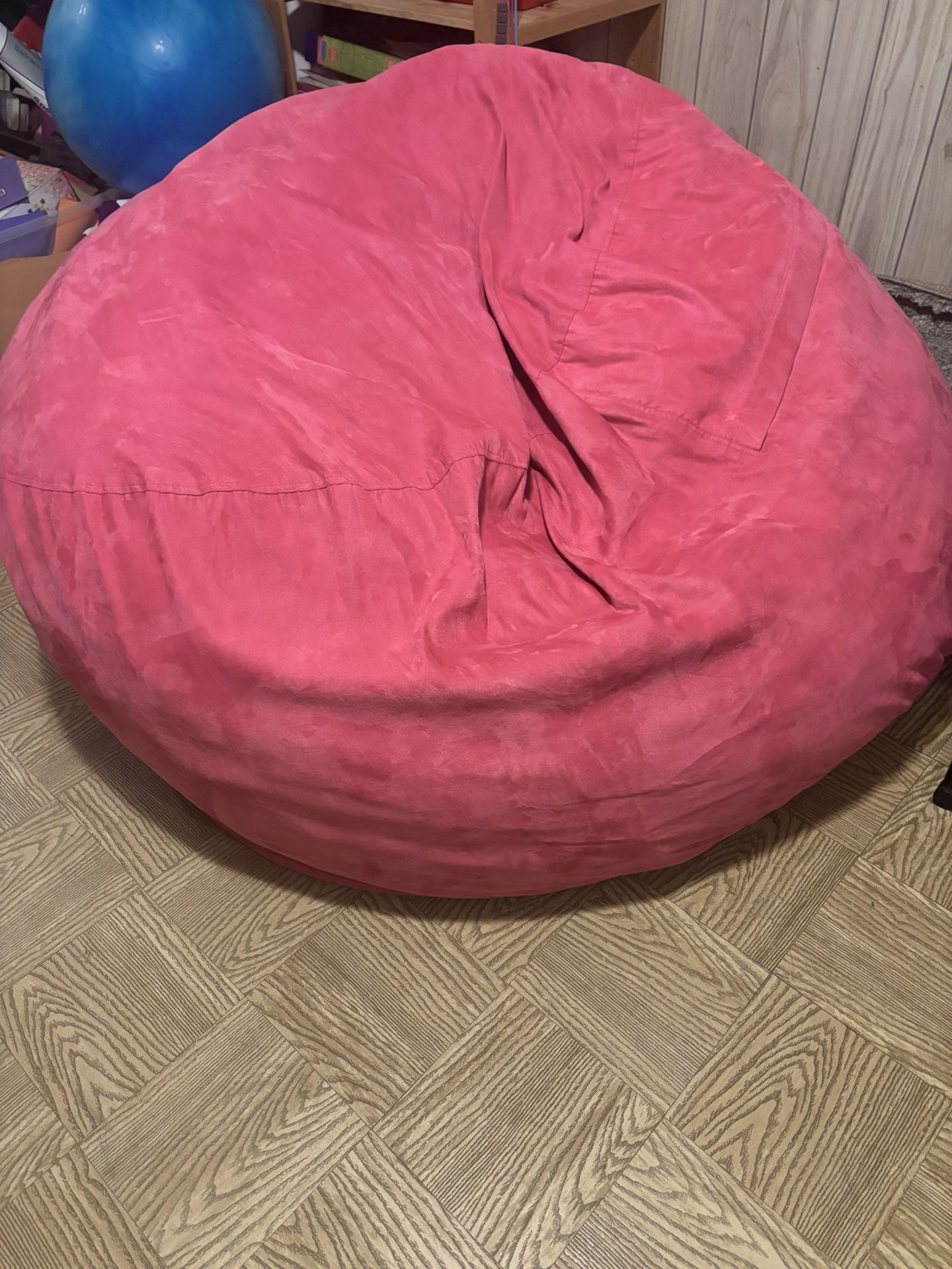 5 foot memory foam Comfy Sack with pink washable microsuede cover. Still in good shape. Lots of fun for a kids. Originally $230