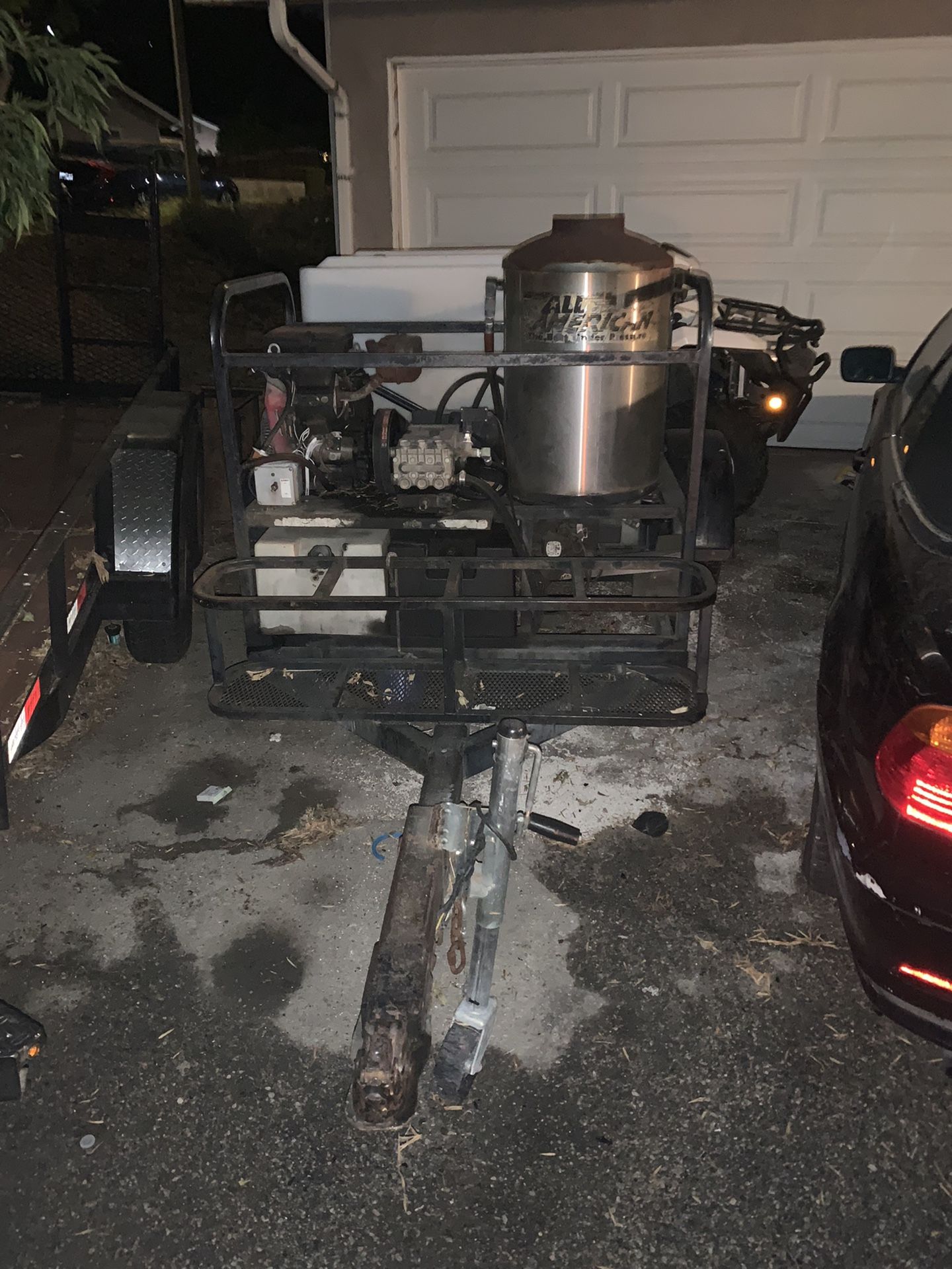Heated pressure washer machine trailer as is needs new battery runs. As is offer me a price