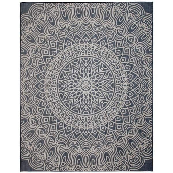 * Medallion Navy/Ivory 8 ft. x 10 ft. Indoor/Outdoor Area Rug