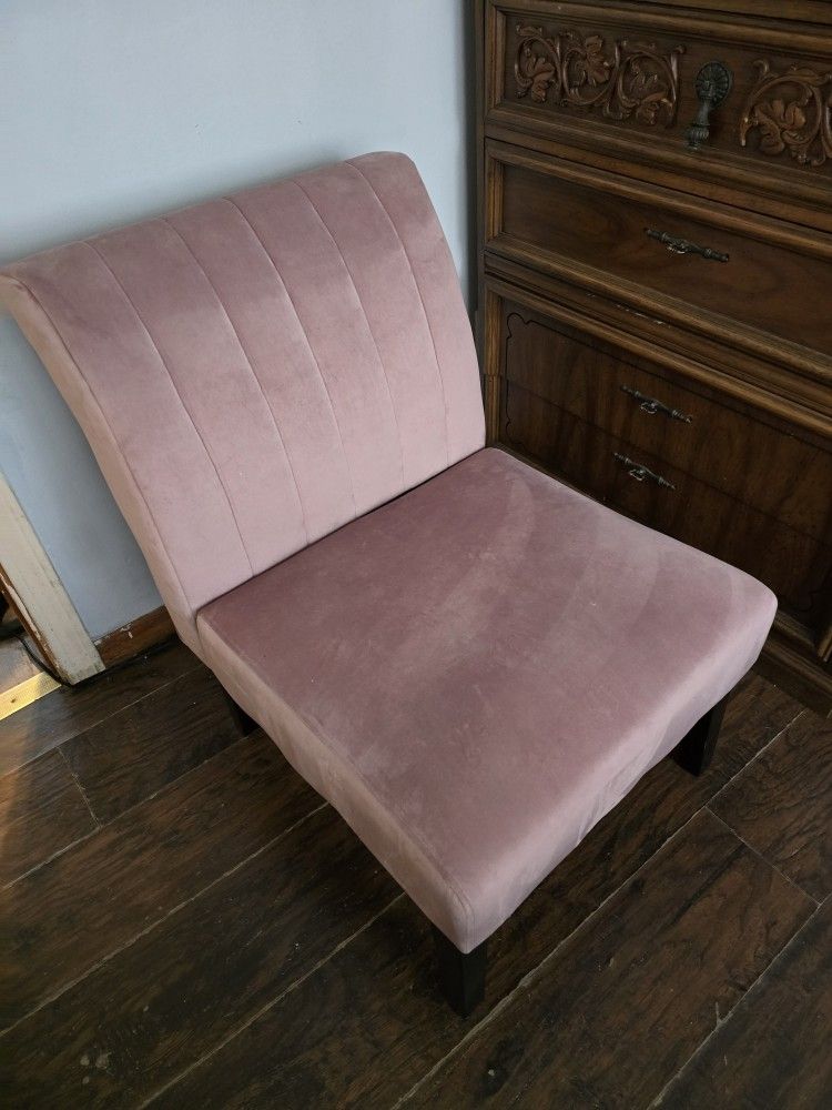 pink or rose-colored velvet upholstery accent chair. Rarely used. Like new CASH ONLY!