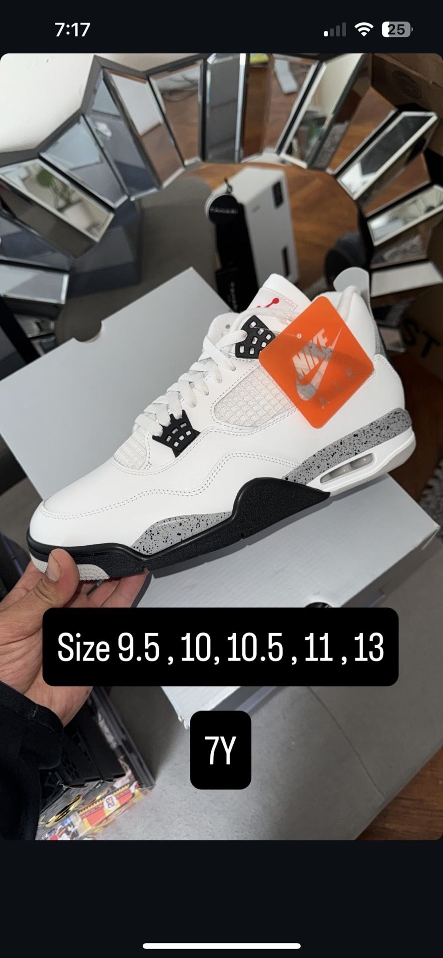 Air Jordan retro 4 cement $300 OG color way Sizes 7y , 10 , 13